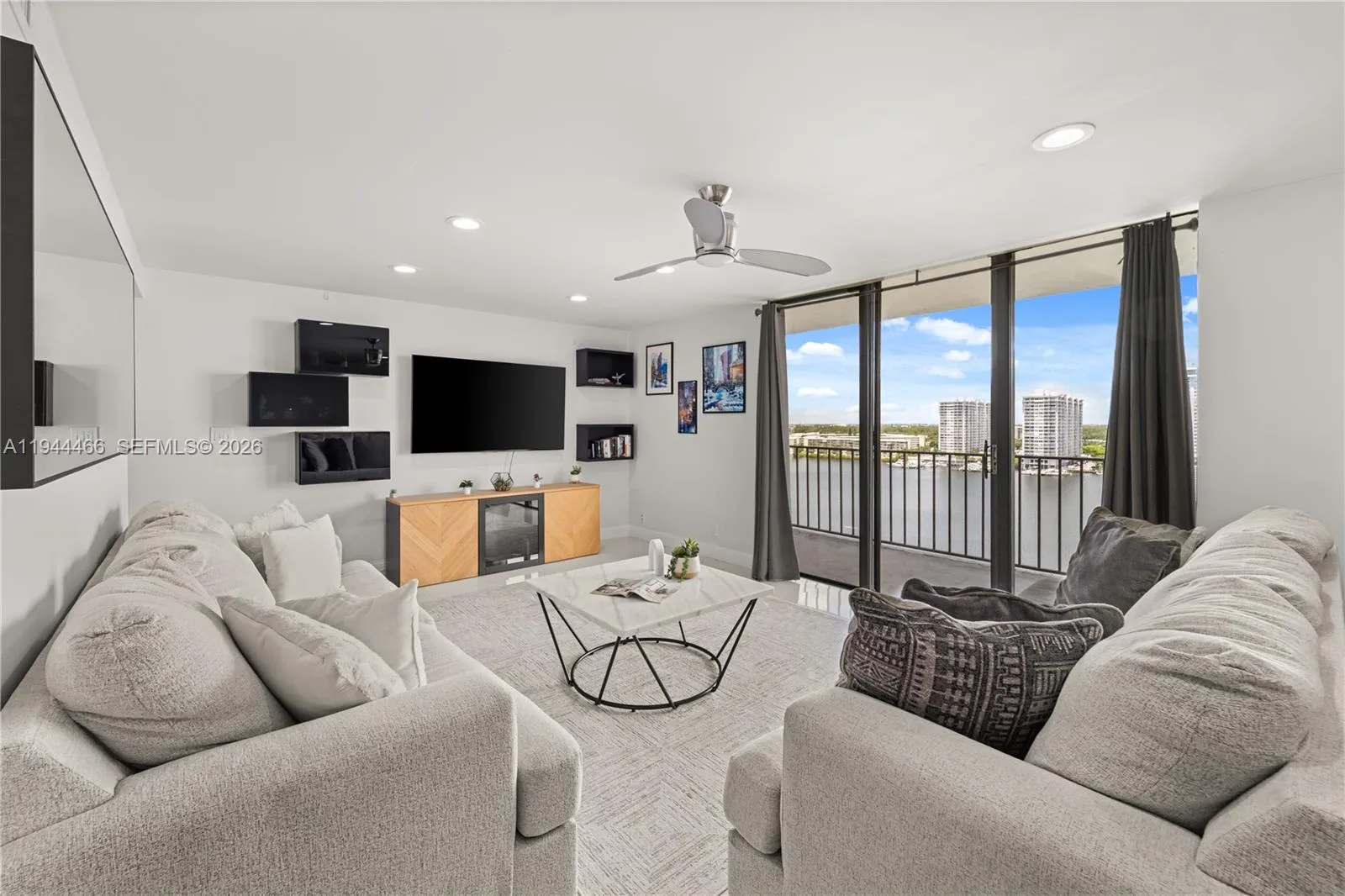 Residence 1401 at Biscayne Cove- Enjoy Spectacular water views from one of the largest 2BR floorplans in thebuilding! This fully renovated unit features white porcelain floors, smooth ceilings with recessed LED lighting, a modern kitchen with new appliances, two beautifully redesigned bathrooms, and an in-unit washer/dryer. Floor-toceiling windows in every room showcase stunning sunsets. Located in guard-gated Biscayne Cove Tower with 24/7 security, valet, attended lobby, 2 pools, tennis courts, gym, sauna & more. Prime Aventura location near A-ratedrnschools, shopping & dining. See Broker Remarks.