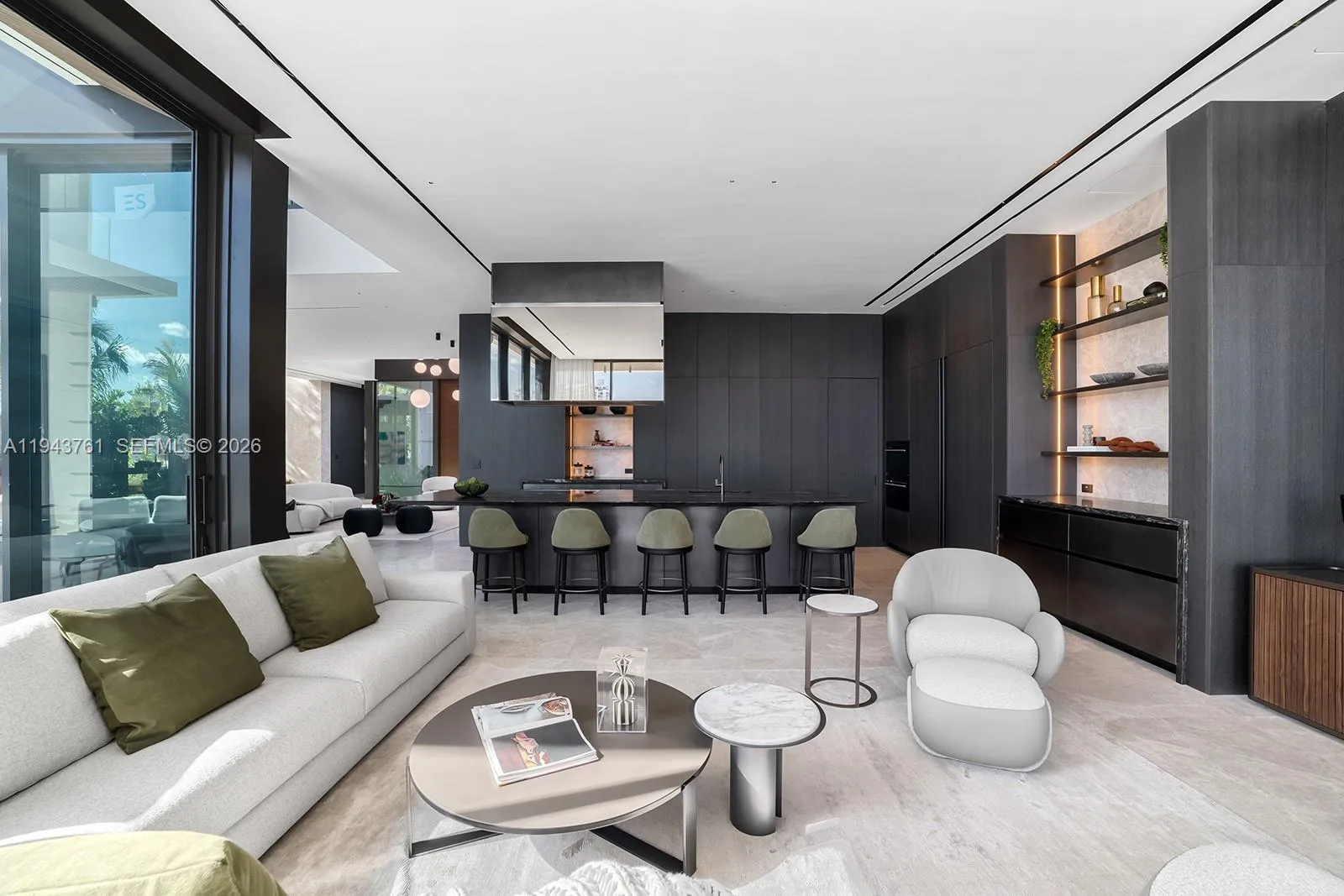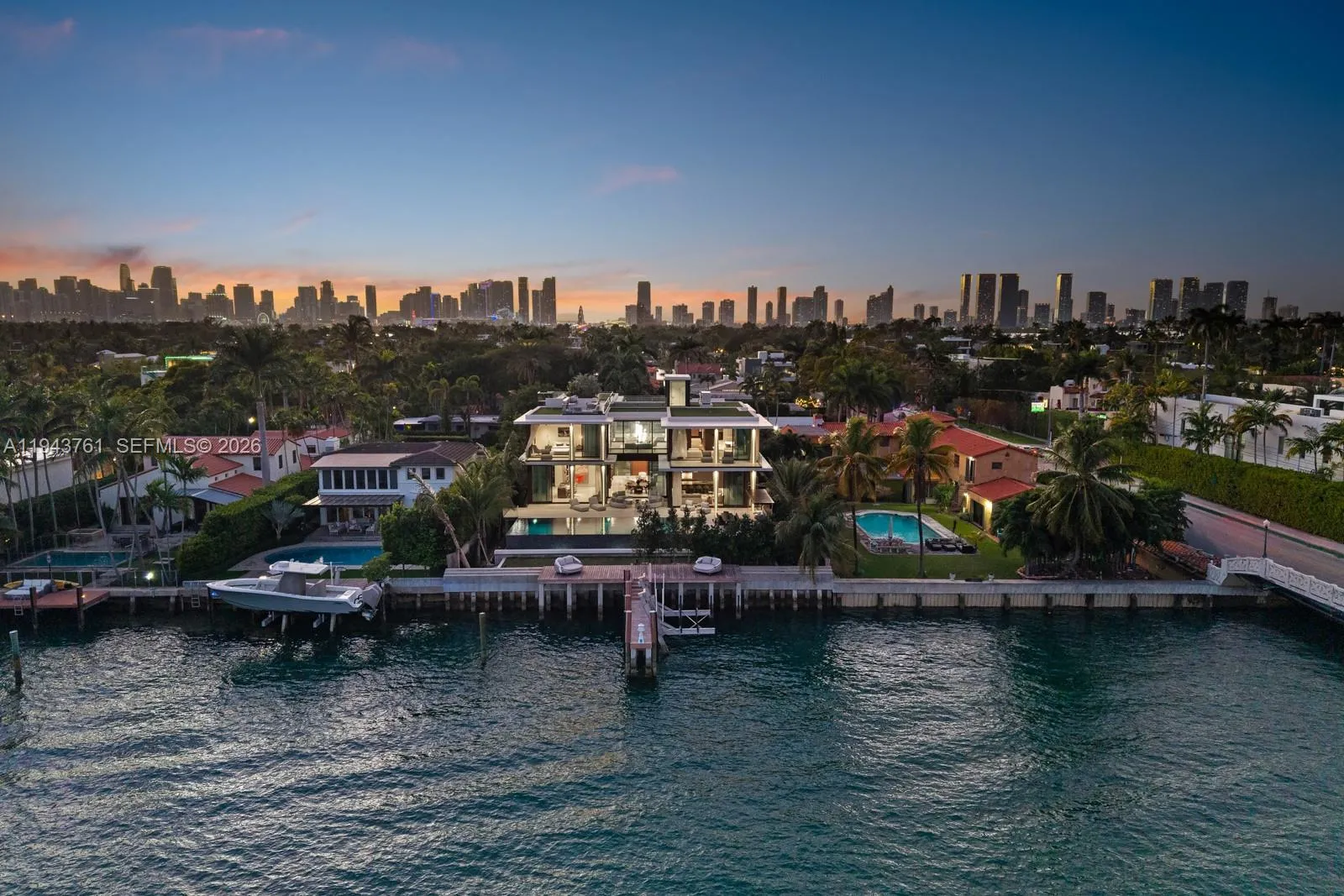 Step Inside With Me! Envisioned by a leading luxury builder, this architectural marvel rises 14.6 feet above sea level, commanding an unparalleled presence on Rivo Alto Island. Meticulously crafted interiors by esteemed Dunagan & Diverio reveal a sculptural staircase, illuminated millwork by Boffi, French oak flooring, and Ivory marble. The hosting salon features 11.6’ ceilings, an opulent bar, and a bayfront TV lounge framed by a flush ES window system to unobstructed Eastern views. The Boffi kitchen offers integrated cabinetry, a showpiece island, and a secondary kitchen equipped with Wolf and Viking appliances. Perfectly positioned with SE exposure, the primary suite features a spa-inspired bath with a concealed pocket door, spacious dressing room and a private terrace. 4 additional ensuite bedrooms + a guest pavilion, theater, elevated home automation, upstairs sitting room, and elevator complete the interiors. Outdoors, the mosaic infinity pool & spa setting also showcase a full Summer kitchen & cabana bath. The dock and lift welcome a large vessel mooring along an impressive 90 feet of water. This offering is topped off with a dramatic rooftop with 360-degree views. With over 4,000 SF, the expansive understory boasts two separate driveways with access to 2 air-conditioned garages, 2 carports, and additional parking for 10+ vehicles. Just minutes from Sunset Harbour and Downtown Miami, this home represents the newest addition to the Venetian Islands landscape.
