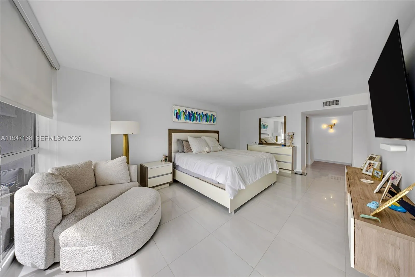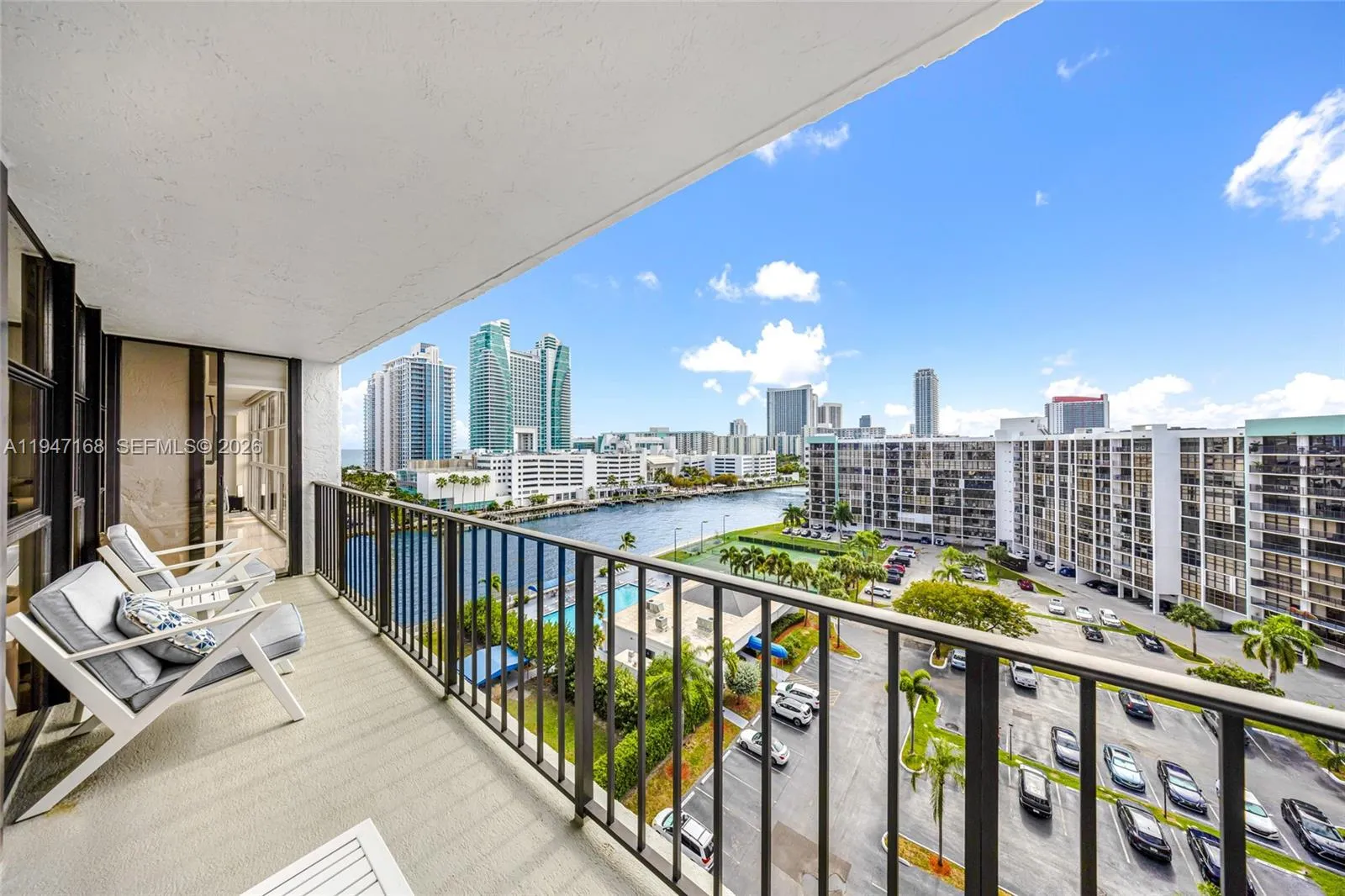 Wake up to sweeping south-facing views of the Intracoastal and waterfront pool from this fully remodeled 2-bed, 2-bath penthouse condo within the Three Islands in Oceanview. Spanning 1,455 square feet, this bright and spacious residence features floor-to-ceiling windows that fill the condo with natural light all day long. The open kitchen creates a seamless flow for everyday living and entertaining, complemented by a generous dining area ideal for hosting gatherings. Beautiful tile flooring runs throughout, and custom built-out closets add comfort and convenience. All renovations were completed with permits, making this a true turnkey opportunity. Enjoy resort-style amenities, a waterfront pool, and 1 assigned parking space, with a second available to rent from the association. Owner is open to renting the unit partially furnished. The following furniture/items excluded: Baby’s room furniture, the TV and mattress in master bedroom and the chair in the master bedroom. Association requires a 2 year lease.