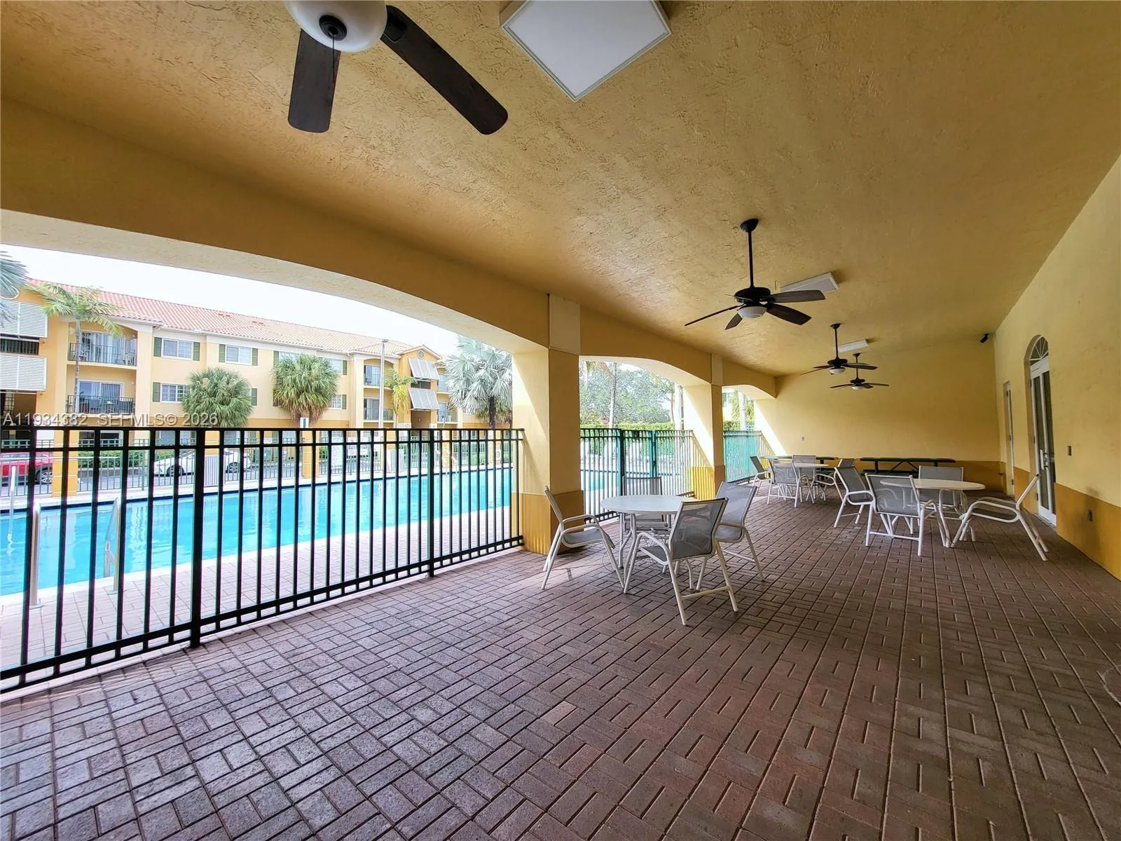 Spacious and bright 2-bedroom, 2-bath ground floor condo at Palm Gardens at Doral, freshly painted and ready for move-in. Featuring a comfortable open-concept layout with living, dining, and kitchen areas. The living room provides access to a balcony. The primary bathroom features a walk-in shower, and the second bathroom includes a tub. Located in a desirable community offering gated access, swimming pool, fitness room (exercise room), and clubhouse for events, this home provides resort-style amenities. Excellent location near the Turnpike and major highways, with easy access to shopping, dining, and entertainment. Situated in a well-regarded part of Doral with access to quality schools, this rental is ideal for families or professionals seeking comfort, convenience, and community amenities.