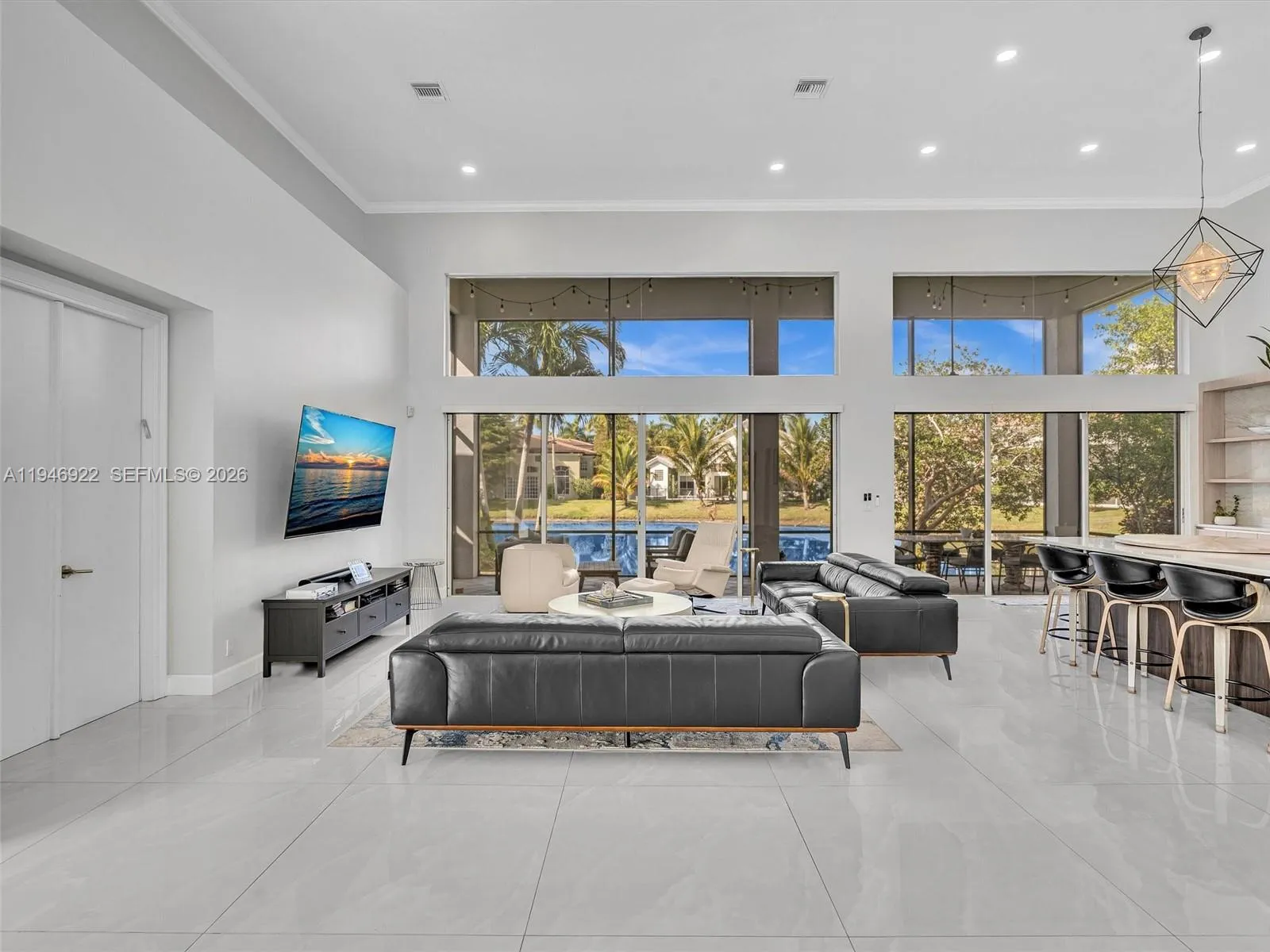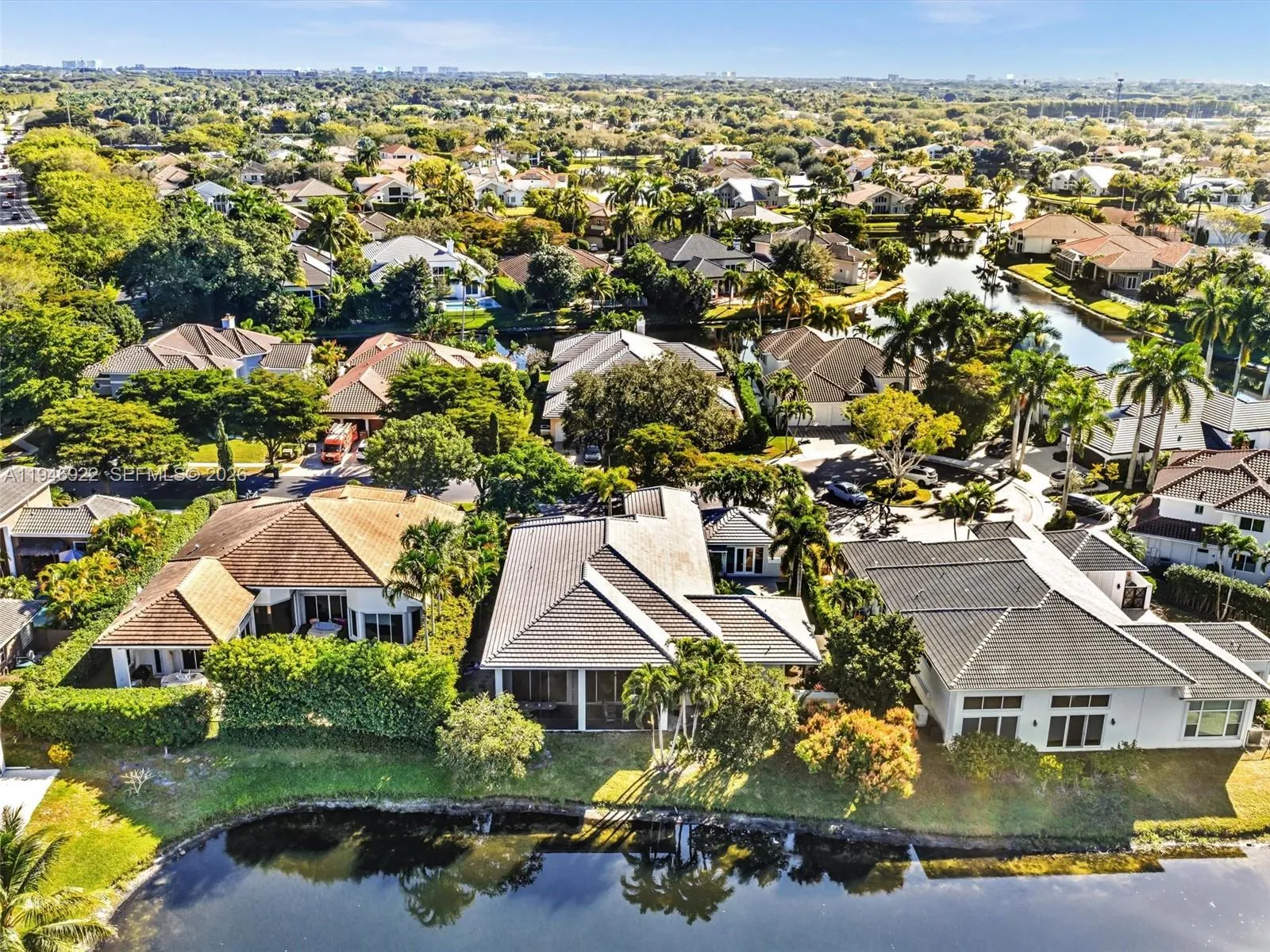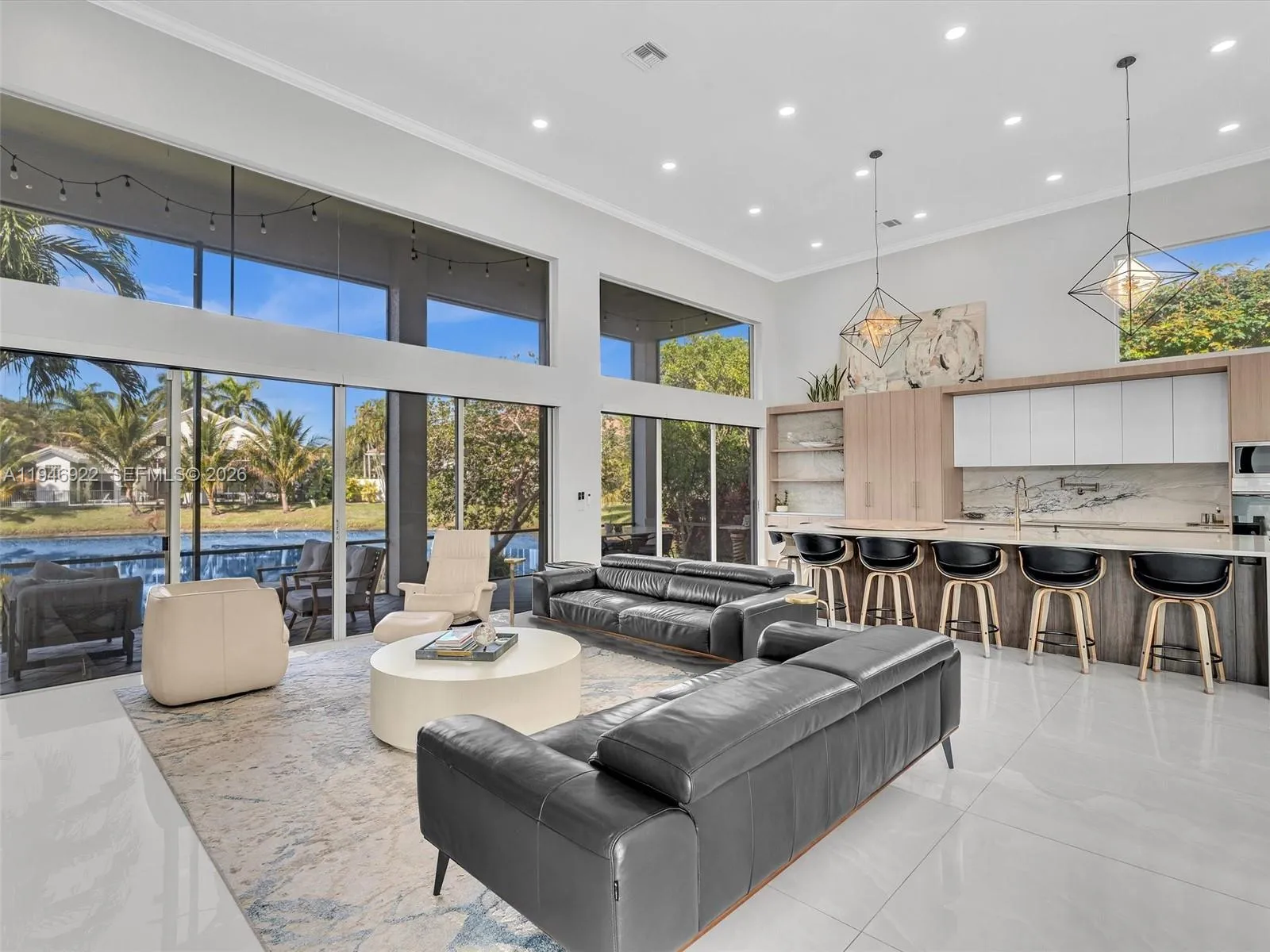 Magnificent one-story courtyard waterfront home in the exclusive gated community of Seasons, located in Central Boca Raton.rnKey features of the property include:rnDesign & Interior: Soaring 16.5″ ceilings, abundant natural light, smooth walls and ceilings, large 4×4 porcelain tile flooring.rnLayout: 4 bedrooms, 4 full en-suite baths, plus a half bath in the main house.rnKitchen: A fully updated chef’s dream kitchen featuring quartz countertops, a huge island, modern cabinetry, stainless steel appliances, and an induction cooktop.rnExterior & Amenities: A 2-car garage, circular driveway, a saltwater pool ( resurfaced with new LED lightening and waterfall) flat tile 2020 roof, and updated AC units ( 2025, 2018, 2018)rnCommunity Amenities at Seasons:rnSeasons is a luxurious 24-hour gated community without equity membership. Residents have access to a newly renovated state-of-the-art fitness center, a heated resort style swimming pool, basketball courts, a spectacular playground, 8 Har-Tru tennis courts, an -n-site tennis pro, and a pro-shop.rnSchool Zoning:rnThe community is zoned for A-rated Boca Schools: Calusa, Omni and Spanish River.rnIt is also conveniently located near top private schools: Pine Crest, Saint Andrews, American Heritage and Donna Klein.