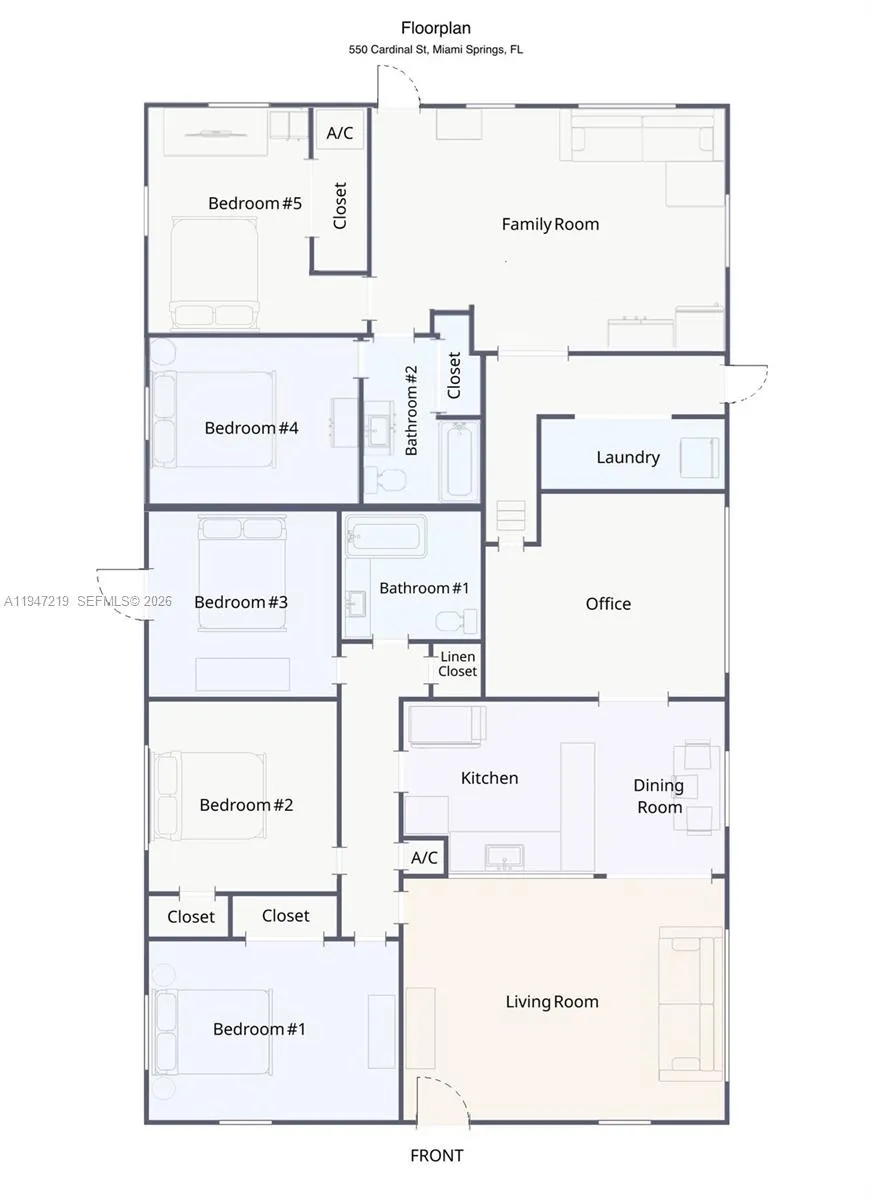 Miami Springs is Miami’s BEST KEPT SECRET! A GOLF COURSE family community along picturesque tree-lined streets. This 5 bedroom/2 bath home offers a FLEXIBLE FLOOR PLAN (see photos) for large families or multi-generational families. Currently used as a 3/1 + office and a 2/1 + Living/dining (with separate entrance). This home is situated on a CORNER lot just under 10,000sf surrounded by lush foliage for privacy, plenty of parking, and room to play. Miami Springs is a true HOME TOWN family community with multiple fun-filled events bringing the community together i.e Independence Day parade, fireworks on the golf course, car shows, farmers market,etc. MS Adult Center, MS Youth Community Centers with indoor basketball courts, MS Aquatic Center, tennis/pickleball courts. Excellent schools K-12. Quaint shops and restaurants in the town center are just a walk, bike ride, or golf cart ride away! 5 MINS TO MIA, >10 mins to new FREEDOM STADIUM, mins to SR112/I-95 to downtown/beaches, mins to Palmetto & Turnpike. VACATION RENTAL ALLOWED visit miamisprings-fl.gov for info.