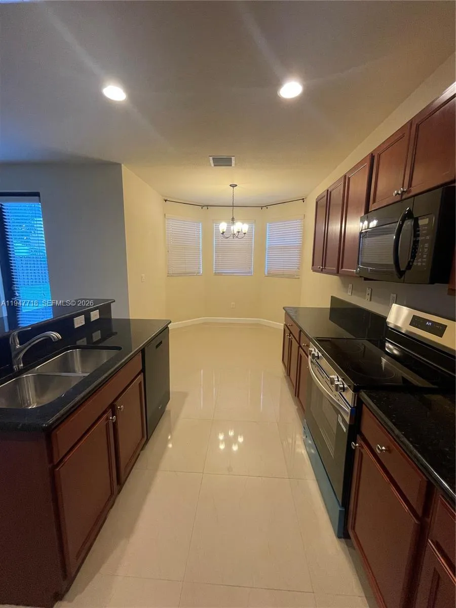 Gorgeous single-family home in the Enclave community at Cutler Bay. This beautiful two-story home features 4 bedrooms and 3 full bathrooms, including a convenient bedroom and full bath on the first floor. The spacious master suite boasts an en-suite bathroom and a large walk-in closet. The kitchen is equipped with wooden cabinets and granite countertops. The property comes fully equipped with a new range, refrigerator, dishwasher, washer, dryer, microwave, electric water heater, and a brand-new A/C unit. Additional features include: Recessed lighting and vaulted ceilings, ceiling fans throughout, double-car garage and hurricane shutters.