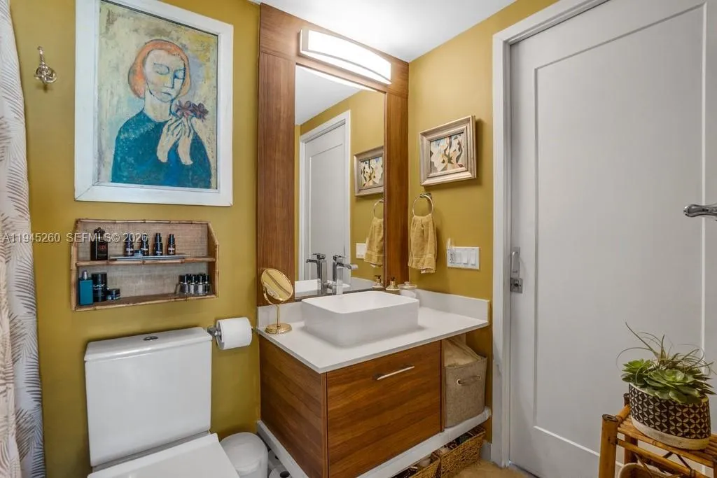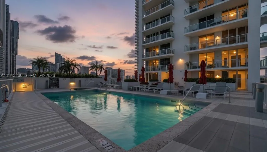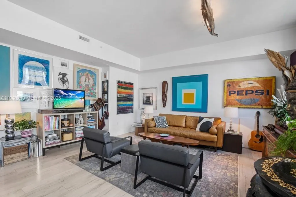Spacious Bayfront 1BR/1BA with Iconic Views & Resort-Style Amenities wake up to breathtaking, unobstructed views of Biscayne Bay where manatees and dolphins often glide by and the sparkling Miami Beach skyline. This spacious 1bed/1bth is located in a boutique, bay front building with soaring ceilings and exclusive boardwalk access, set beside a beautifully landscaped dog park. This LEED Silver–certified home offers sustainable living with exceptional value: virtually all utilities are included in the monthly association fee, and there are no outstanding special assessments. Enjoy elegant modern finishes including quartz countertops, wood-look porcelain tile flooring, floor-to-ceiling impact windows, and a private balcony perfectly positioned to take in the views. The building features resort-style amenities with panoramic bay vistas, including a waterfront pool and hot tub, fully equipped gym, business center, and private theater. Located in Edgewater, across the bay from the new Villa Miami by the Carbone Group, and walkable to Whole Foods, Trader Joe’s, Midtown shops, Wynwood, and the Design District. Includes one assigned covered parking space with free electric vehicle charging. Select furnishings are negotiable with the sale, including a new leather sofa, two modern leather chairs, dining table/six chairs, barstools, rugs, and an entertainment unit. A rare opportunity to own a tranquil waterfront condo with city convenience, sustainable features, and unforgettable views.