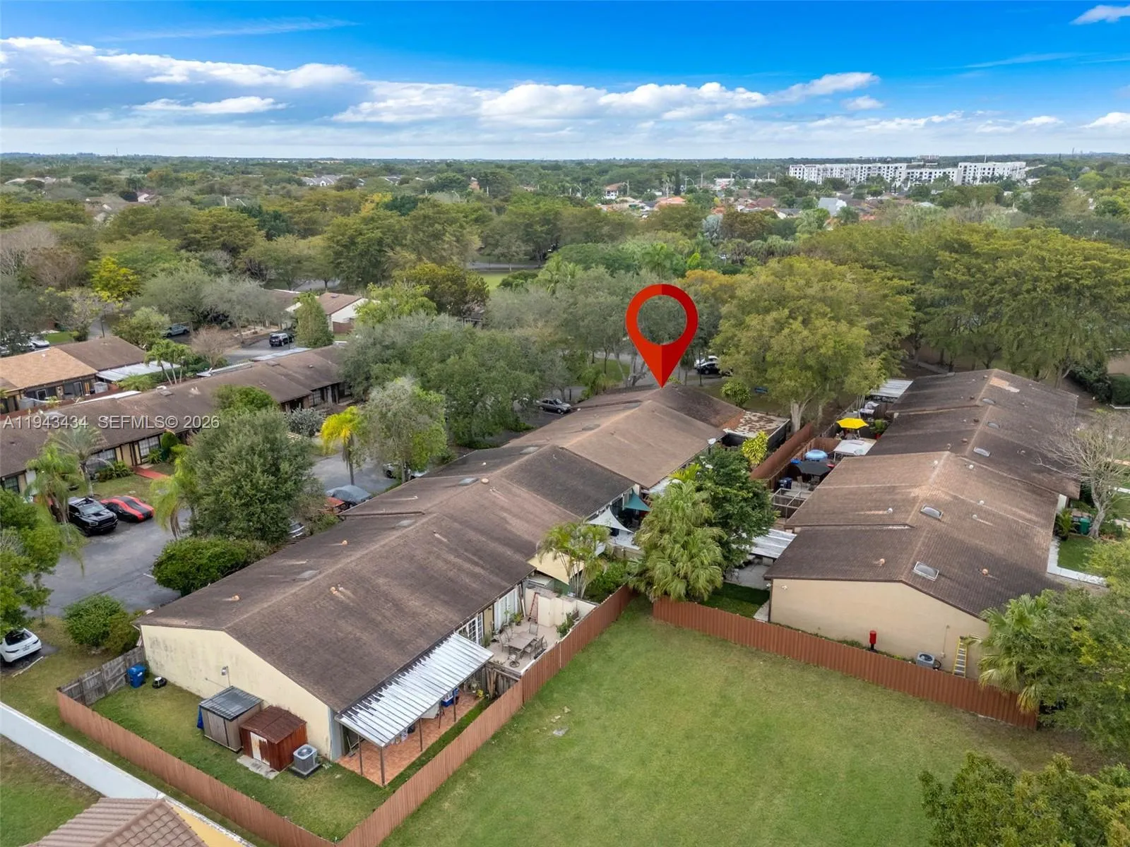 Corner-lot townhouse featuring 2 bedrooms, 2 bathrooms, and a versatile loft, located in the quiet and desirable Cindis Place community. These unique Miami-style loft homes offer soaring ceilings that create an open, airy feel and make the home live much larger than the square footage suggests.rnrnThe functional layout provides an excellent opportunity for a buyer to add their own updates and personal touches at a minimal cost. Step outside to a spacious, tiled back patio with endless potential—perfect for creating a private outdoor lounge or entertaining space. The side yard offers ample room for additional storage, a low-profile shed, or extra space for family needs and recreational items.rnrnEnjoy the benefits of a low-traffic neighborhood with one of the lowest association fees in Kendall. The community features a playground, lush green spaces, and a welcoming atmosphere, making it a great place to call home. The house has its own private driveway for the owners cars. Guest parking spaces available throughout the community.