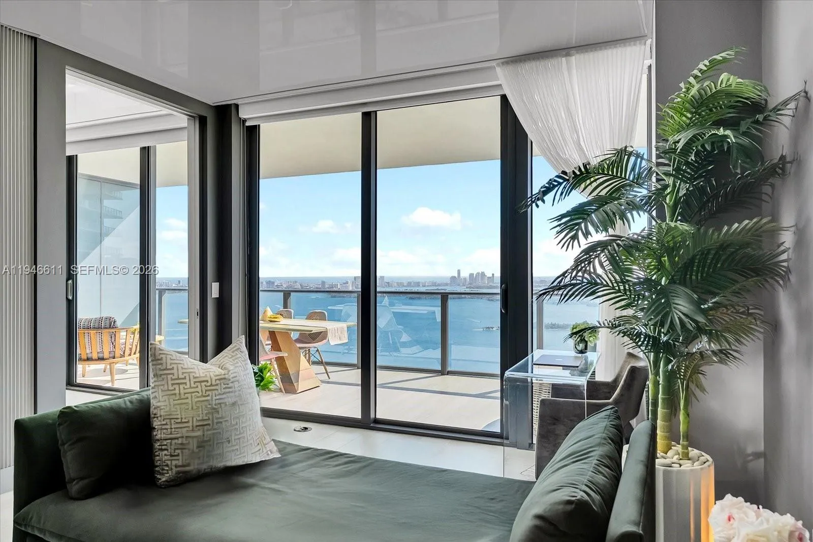 Beautifully redesigned with a refined, modern aesthetic, this professionally curated residence showcases distinctive luxury finishes best experienced in person. Enjoy sweeping panoramic views of Biscayne Bay, the Atlantic Ocean, and the Edgewater skyline from an oversized balcony . Thoughtful upgrades include custom lighting, reflective ceilings, striking 3D ribbed accent walls, textured Italian wallpaper, bespoke closets, ceramic oak flooring, and one assigned parking space. Resort-style amenities span a two-acre pool deck with a striking 100’ round pool, spas, tennis courts, and a state-of-the-art fitness center. Social and lifestyle spaces include club rooms, indoor and outdoor kitchens, cigar and wine rooms, game rooms, bowling alleys, and more.