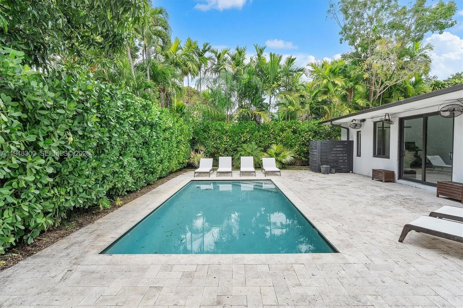 Quintessential Miami Shores Home! Located on a private street w/no through traffic. House is surrounded by mature trees giving it a sense of peace & serenity. Chef-inspired kitchen w/huge dolomite countertops island, Fulgor Milano gas range, wine cooler & tons of storage/cabinets. Enjoy spectacular views of your brand new pool w/lush landscaping from living/dining areas. Split bedroom plan. Spacious master suite that has a walk-in closet w/tons of natural light. The Master bath has 2 sinks, rain shower, and a tub. Separate laundry room. All impact windows & doors. 2 car garage. EV charger. A must-see!!
