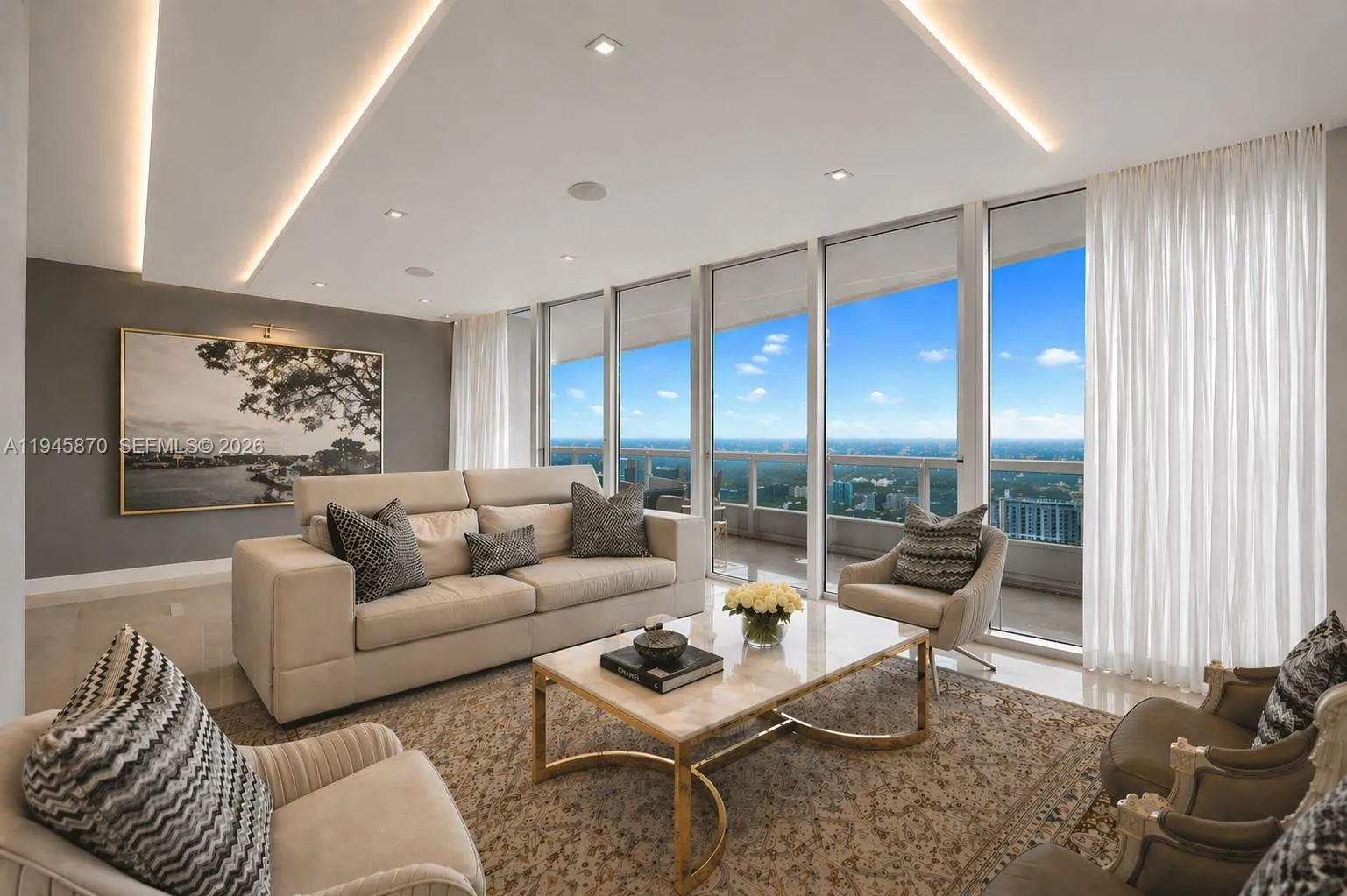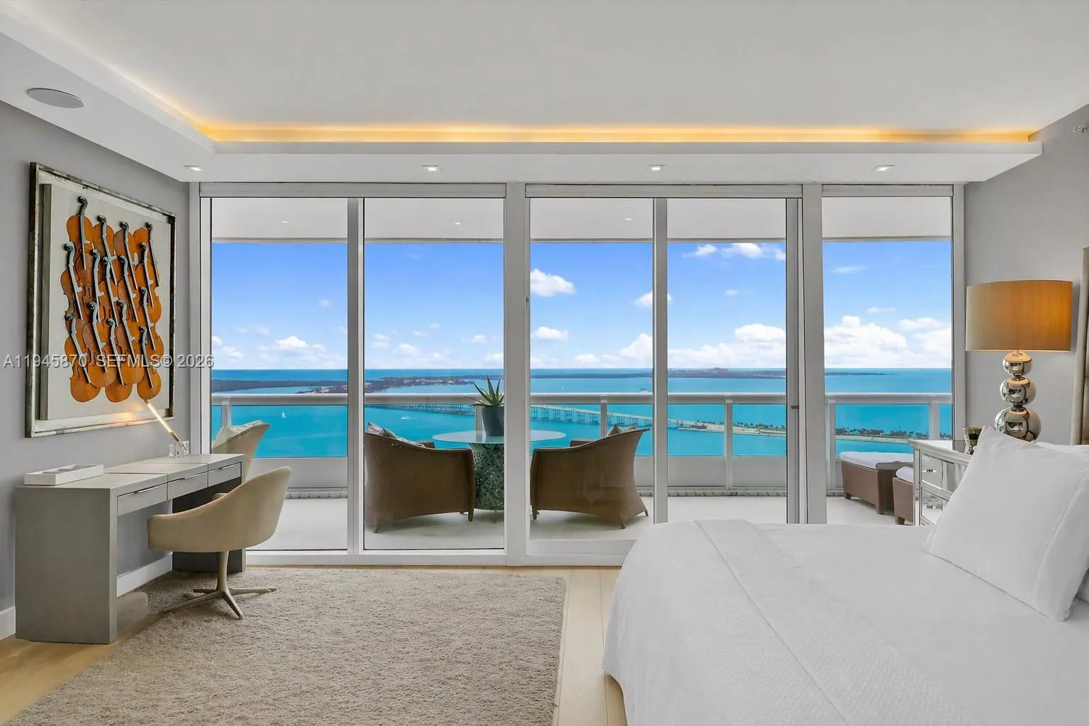 Experience refined waterfront living at Santa Maria, one of Brickell’s most prestigious buildings. This fully renovated 4,030 sq ft residence with over 1,000 sq ft of balcony space offers a 4-bedroom, 5.5-bath flow-through layout, private foyer, and elevator entry with stunning, unobstructed views of the ocean, bay, and Miami skyline. Expansive north- and west-facing terraces fill the home with natural light. Features include a Veneta kitchen with premium appliances, elegant wood and marble flooring, his-and-hers closets, and a spa bath overlooking the bay. Enjoy resort-style amenities—24-hour security, fitness center, pool, tennis, racquetball, marina access, and a prime Brickell lifestyle