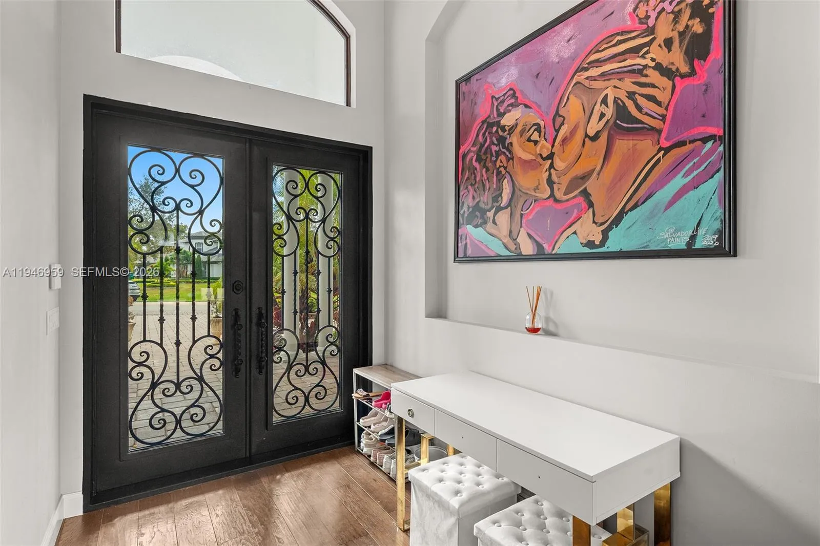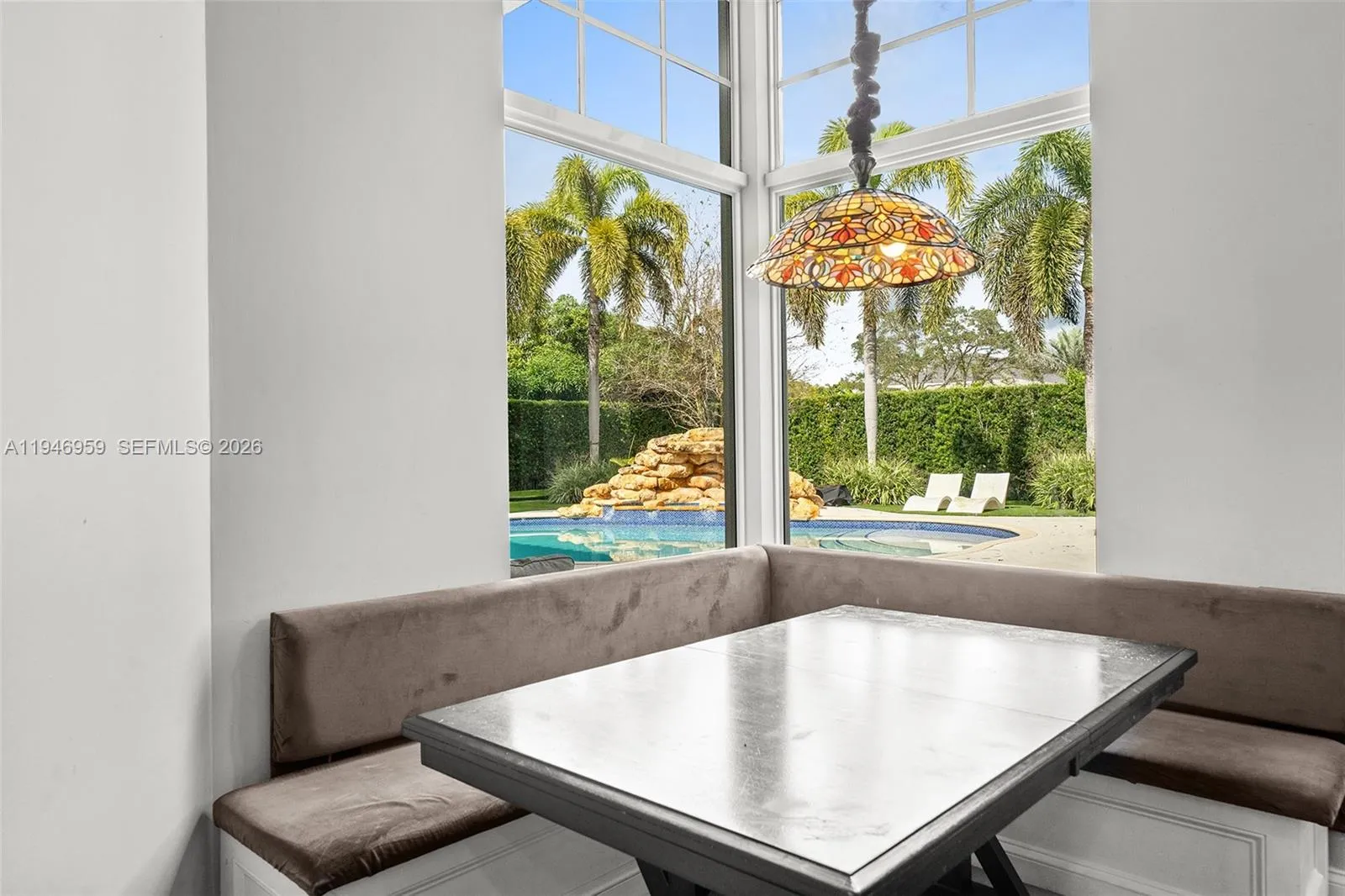 Villa Stonebrook presents a private retreat designed for comfort, functionality, and entertaining. The home is thoughtfully arranged around a central pool area, creating seamless indoor-outdoor flow complemented by a fully equipped summer kitchen. Interior highlights include hardwood flooring, dramatic ceiling details, and expansive living spaces filled with natural light. The open kitchen serves as the centerpiece of the home, connecting effortlessly to the casual dining area and spacious family room. The primary suite features a marble-appointed bathroom with a sauna and walk-in shower and oversized closet space. An outstanding opportunity to own a distinctive residence within Stonebrook Estates.