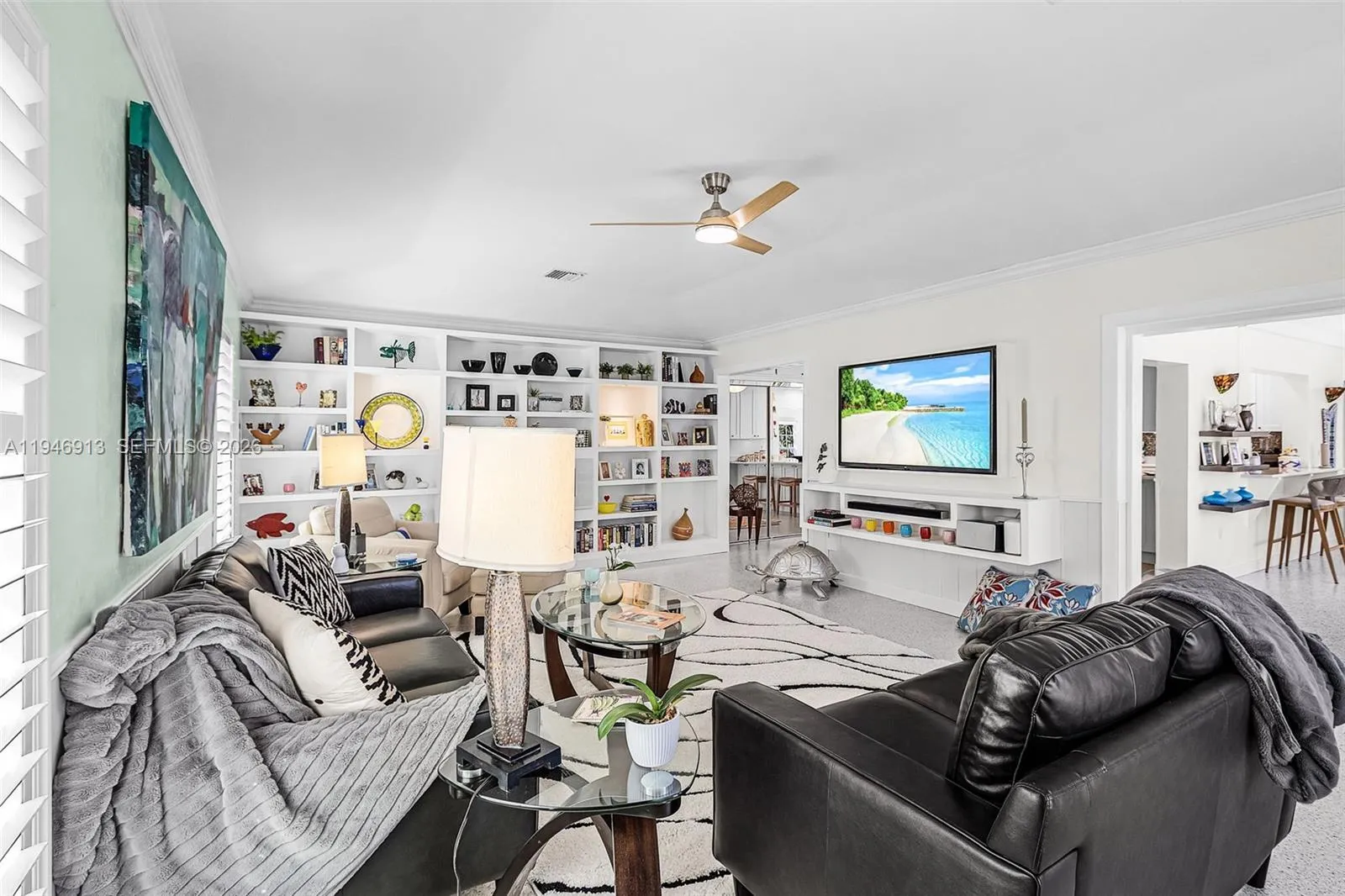 Welcome to your waterfront oasis – a modern, upscale, hurricane-resilient home designed for comfort, style and peace of mind. Offering 1,935 sq ft of meticulously maintained heated/cooled living space (2,692 sq ft total), this beautifully upgraded residence combines modern luxury with exceptional durability and low-maintenance living. Step inside to discover epoxy terrazzo flooring throughout and Enduraflood waterproof removable panelling, ensuring long-lasting protection and effortless upkeep. Top-rated standing seam metal roof. The home is equipped with multi-pane hurricane-rated windows, doors and shutters, giving you year-round confidence and safety. The modern chef’s kitchen impresses with 75 sq ft of quartz countertops, new appliances, and rich hardwood cabinetry – perfect for cooking, entertaining, and everyday living. Enjoy a spacious 332 sq ft living room, complete with a custom wall unit, fireplace, and sleek floating TV hutch. Large rooms, contemporary bathrooms, and a stylish walk-in shower elevate the home’s comfort and design. Outdoors, xeriscape landscaping provides beauty with minimal maintenance, and expansive 1,395 sq ft Trex concrete dock and deck lifestyle areas, creating an ideal setting for relaxing, hosting, and waterfront boating enjoyment. The deep-water access home features a reinforced seawall with cellular foam subsurface stabilization. This well-maintained home has a detailed improvement schedule available for interested buyers.