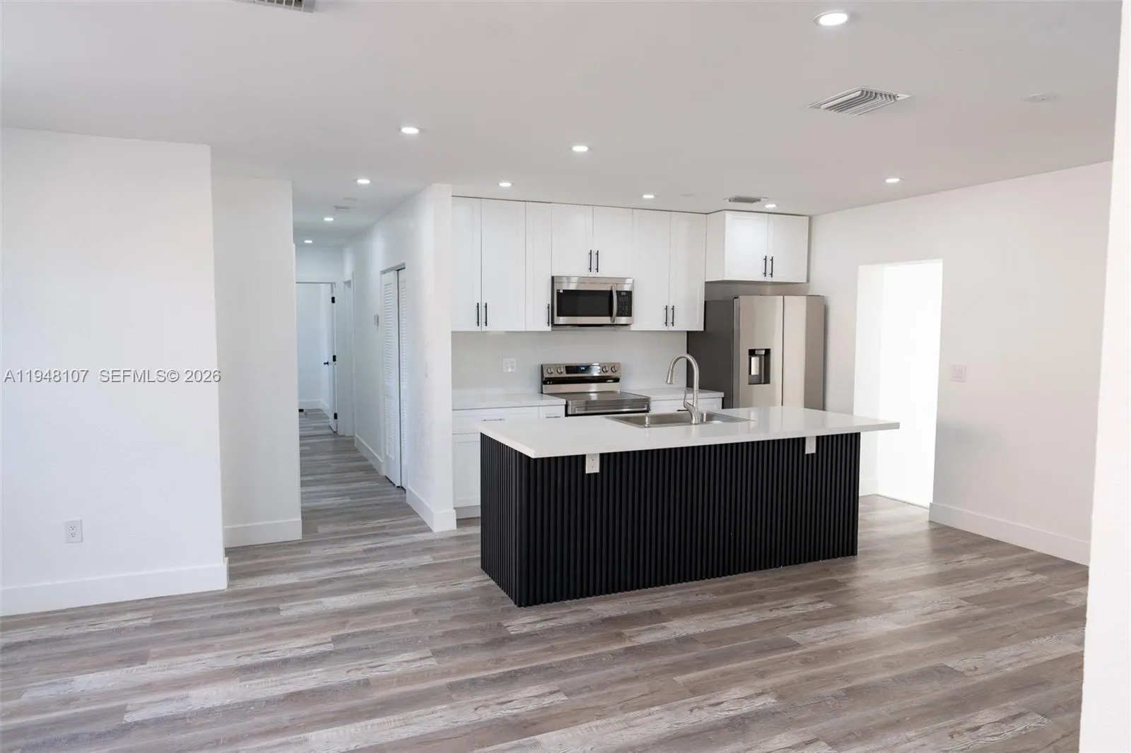 Fully Renovated 4 Bedroom, 2 Bath Single-Family Home ONLY 20 minutes from the Hard Rock Stadium! Larger than what appears on tax records (1517 sq ft). This property features a brand-new shingle roof, new high-efficiency central A/C, and a new Titan tankless water heater. The interior has been freshly painted and showcases a new modern kitchen with quartz countertops, new stainless steel appliances, and durable vinyl wood flooring throughout. Spacious primary bedroom with an en-suite bathroom, 4th room could easily be converted into a studio/efficiency. Enjoy a spacious fenced-in backyard with multiple mature fruit trees, ideal space for outdoor entertaining or for your dream pool. The property also features a shed for additional storage and tools. NO Association!