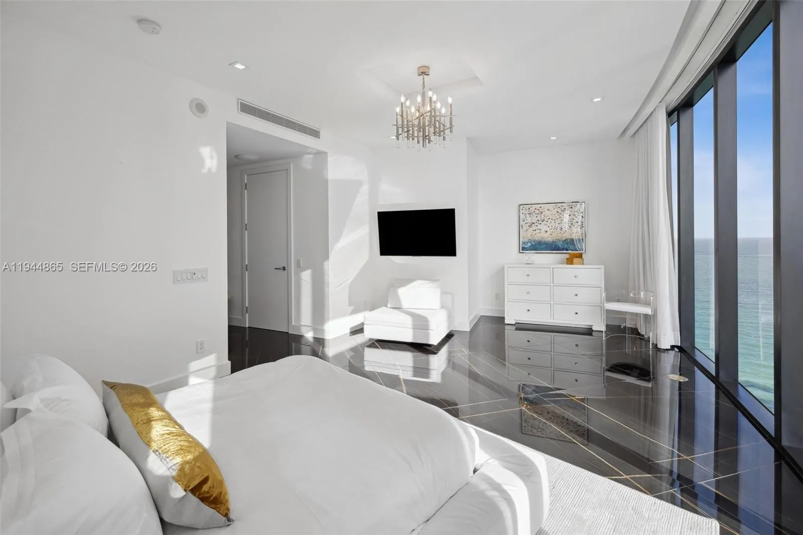 Ascend effortlessly with your vehicle directly to your private two-car sky garage where a realm of ultra-luxury coastal living awaits. Offering both Ocean and City views this exclusive 3 bed/4.5 bath residences is truly a designer masterpiece with elegantly outfitted RH furnishings and fixtures, stunning oversized Italian porcelain floors and bespoke finishes such as custom wood & mirror panelings, a one of a kind built-in fireplace and TV unit with a motorized lift ensuring uninterrupted ocean views, a sleek black carbon fiber kitchen, tailored linen curtains as well as black out blinds both on remotes and recessed lighting in every room, top line appliances, Toto toilets, maids quarters, laundry room with tub, walk in closets, separate freezer & fridge, wine cooler, double oven, and storage room. While exterior features allow you to immerse yourself in panoramic ocean views on a private balcony with a heated pool, summer kitchen, and glass enclosed outdoor dining. Indulge in exclusive amenities: oceanfront gym & weekly classes, private theater, multi-sport & race car simulators, billiards room, spa & treatment rooms, hair salon, oceanfront & sundeck pools, private restaurant that caters anywhere on premises, lobby bar & lounge, private wine storage, concierge and more. Each detail exudes a sophisticated elegance that defines a truly unparalleled lifestyle and is fully equipped with every living necessity so you can move in seamlessly and enjoy complete peace of mind.