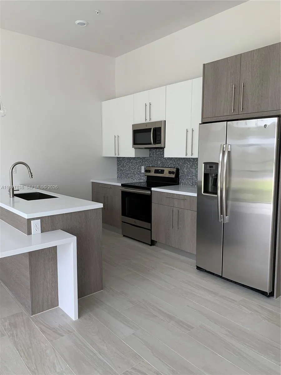 This beautiful 2-story townhouse is located in the desirable gated community of Strata at Plantation. High ceilings and an open floor plan create a bright and elegant atmosphere throughout the unit. The kitchen with sleek European cabinetry, stainless steel appliances, and a signature island is perfect. Designer bathrooms and contemporary finishes add a luxurious touch, while ceramic tile on the main level and plush carpeting upstairs. The primary suite features a spa-like bathroom, a large closet, and a private balcony. The 2 bedrooms are filled with natural light and have a lake. Sliding glass doors from the living room open to a common garden area, ideal for outdoors activities. Close to the unit, the clubhouse provides residents with a range of amenities, including a pool and fitness center.