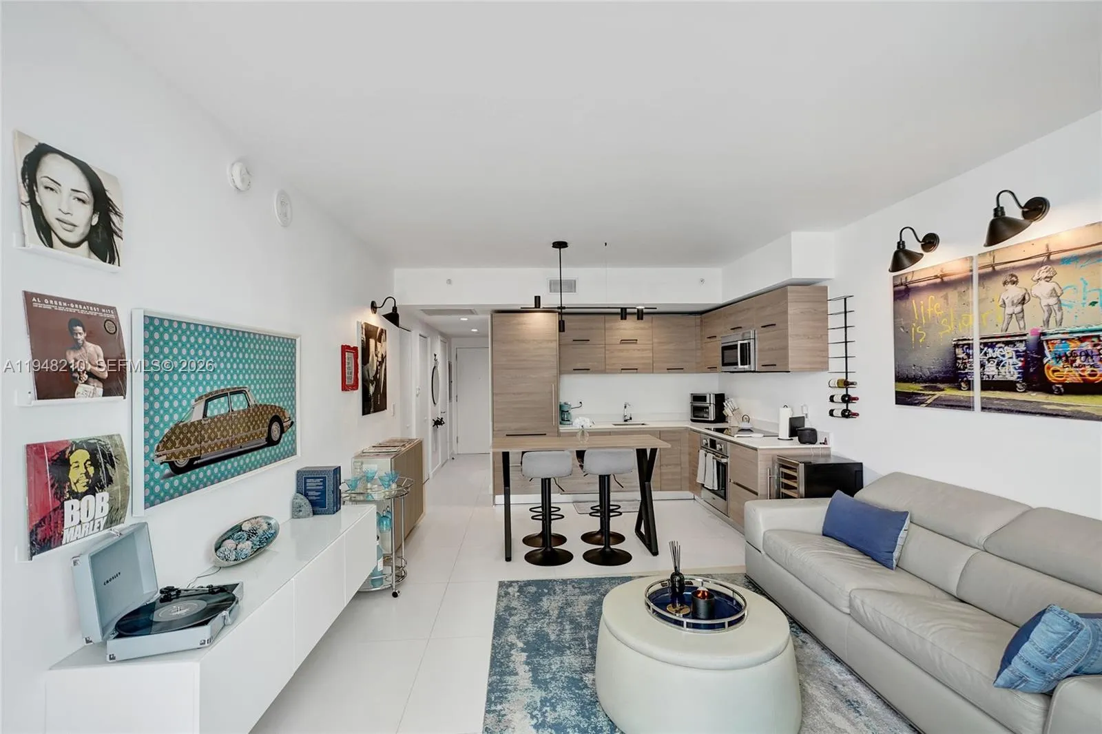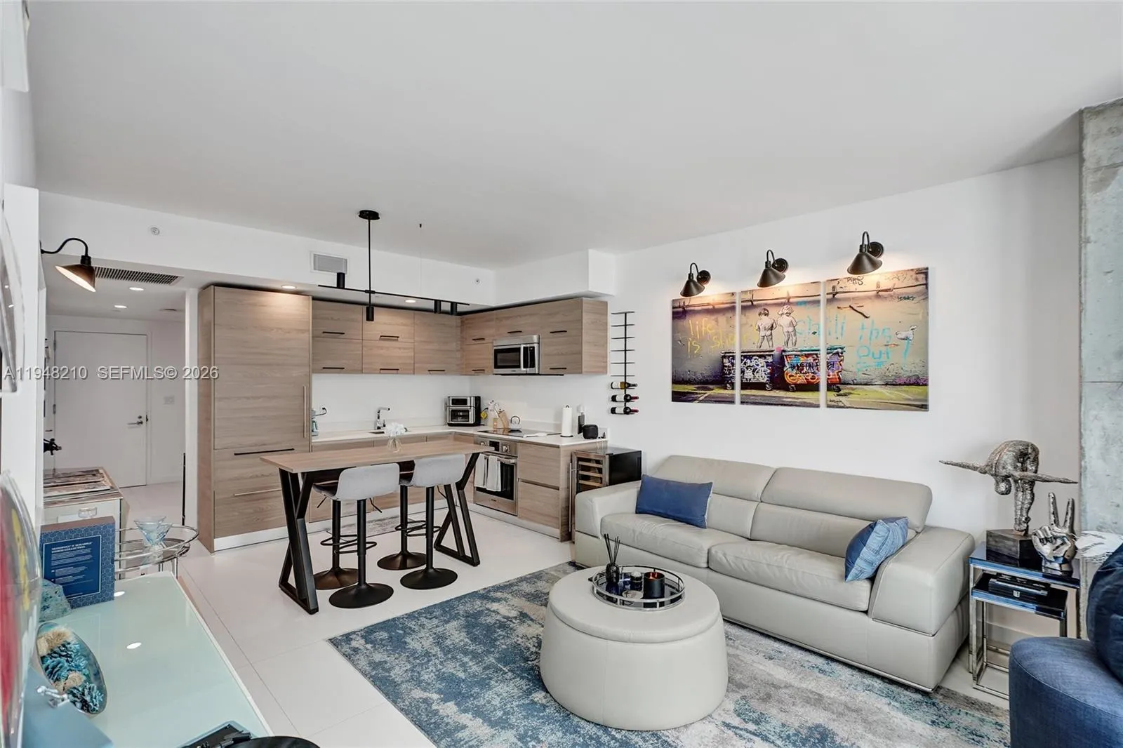 Beautifully furnished one-bedroom plus den at Dua Miami, ideally located on vibrant South Miami Avenue in the heart of Brickell. Enjoy sweeping bay and city views from the oversized terrace, complemented by floor-to-ceiling glass in both the living area and bedroom. The open-concept layout features 9-foot ceilings, a sleek kitchen with Bosch appliances, and a flexible den perfect for a home office or studio. Thoughtfully curated with modern furnishings, art, and warm design accents. In-unit washer and dryer. Resort-style amenities include a fitness center, spa, sky pool, lap pool, and acclaimed DUA restaurants just downstairs. Steps from Brickell’s best dining, shopping, and nightlife.
