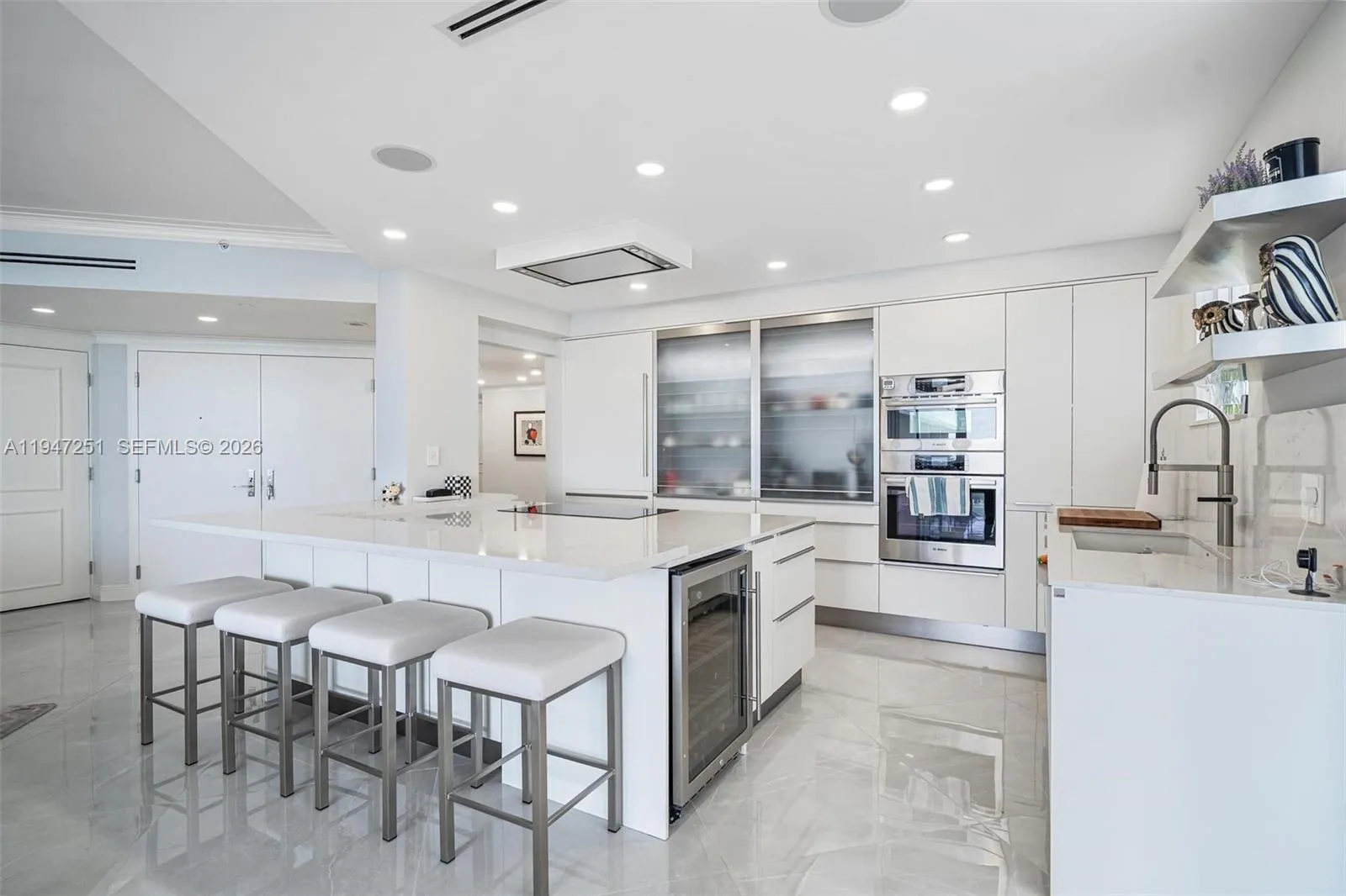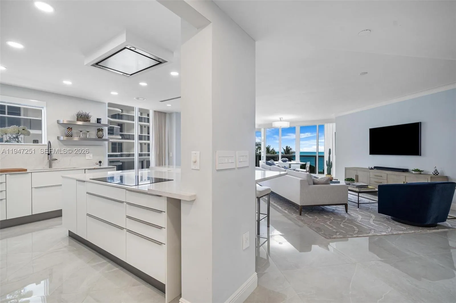 Spanning over 2,200 square feet, the unit has been fully renovated and features an open-concept layout with floor-to-ceiling windows and a deep, wrap-around balcony that captures direct views of the ocean and the pool deck. Built in 2002, the spacious and well designed home features a European kitchen with an Island designed by Leicht and equipped with Liebner and Bosh appliances, including a wine cooler. The Unit is equipped with Hurricane impact windows offering superior storm protection, enhanced security and exceptional sound insulation with no shutters required.rnThe residence is accessible via a private elevator foyer including a separate service entry. Solimar is a full-service building, residents have access to well-maintained amenities including a heated pool, all inclusive beach service, a fitness center, and valet parking.rnIdeally located just minutes from Bal Harbour Shops and Boutiques, cafes and restaurants of Harding Avenue and in close proximity to the houses of worship, the residence offers a perfect balance of luxury and everyday convenience making it well suited for full time or seasonal living with a premier oceanfront address.rnUnique opportunity not to be missed for a discerning buyer.