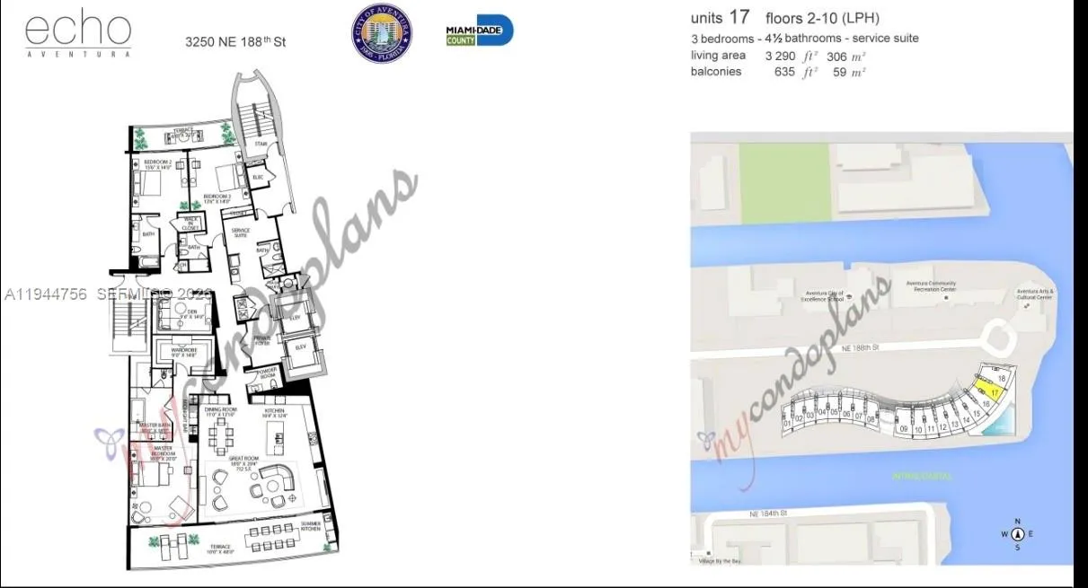 One-of-a-kind Carlos Ott–designed residence at Echo Aventura. This modern flow-through condominium is accessed via a private elevator opening directly into the home and features refined interiors with smart-home technology.rnrnOffering 3,290 SF of open living space, this 3-bedroom plus den residence is fully furnished and equipped with Bosch and Sub-Zero appliances. Enjoy breathtaking views from the expansive terrace with summer kitchen and built-in BBQ, ideal for entertaining.rnrnThe primary suite includes a midnight kitchen, oversized spa-like bathroom, and walk-in closet.rnrnFive-star amenities include a bayfront infinity-edge pool, 4,000 SF fitness center, spa, coffee shop, concierge, courtesy car service within Aventura, and transportation to select luxury beach clubs. Available for a 6-month lease starting 4/1/2026.