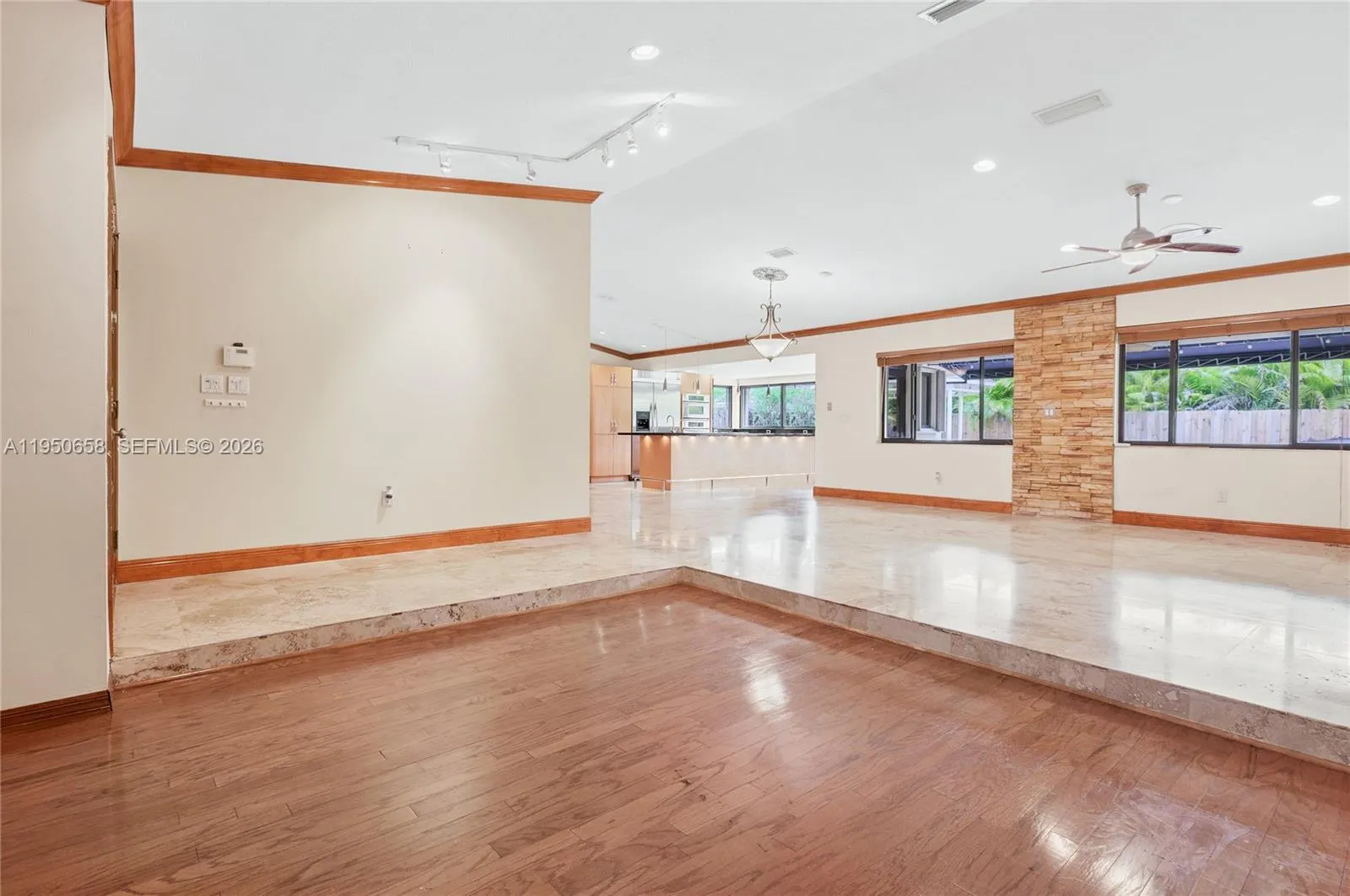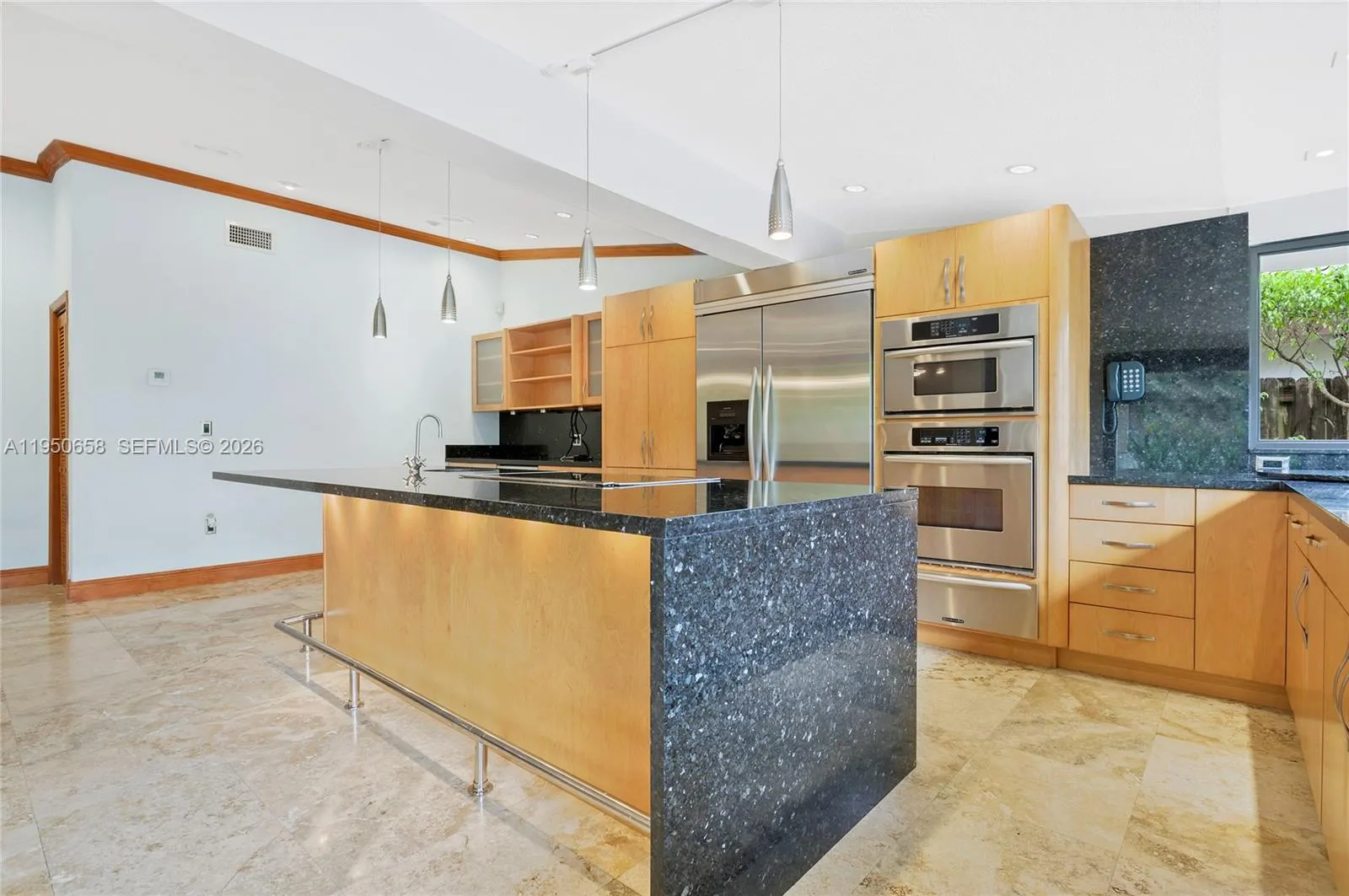 A stunning open-concept home featuring an impressive 22-ft custom gourmet kitchen, complete with a spacious cooking island, premium double-wide refrigerator, stainless steel appliances, wall ovens, warming drawer, and wine cooler—all overlooking the vaulted-ceiling living areas. Abundant natural light fills the space, offering beautiful views of the covered patio and gazebo.rnrnThis fully remodeled 4-bedroom, 2-bath residence offers 2,056 sq ft of refined living, highlighted by a durable metal roof, casement impact windows and doors, and an insulated two-car garage door. Travertine and wood flooring elevate the home’s elegance, complemented by numerous thoughtful upgrades throughout.rnrnIdeally located near Baptist Hospital, this property perfectly embodies the South Florida lifestyle.