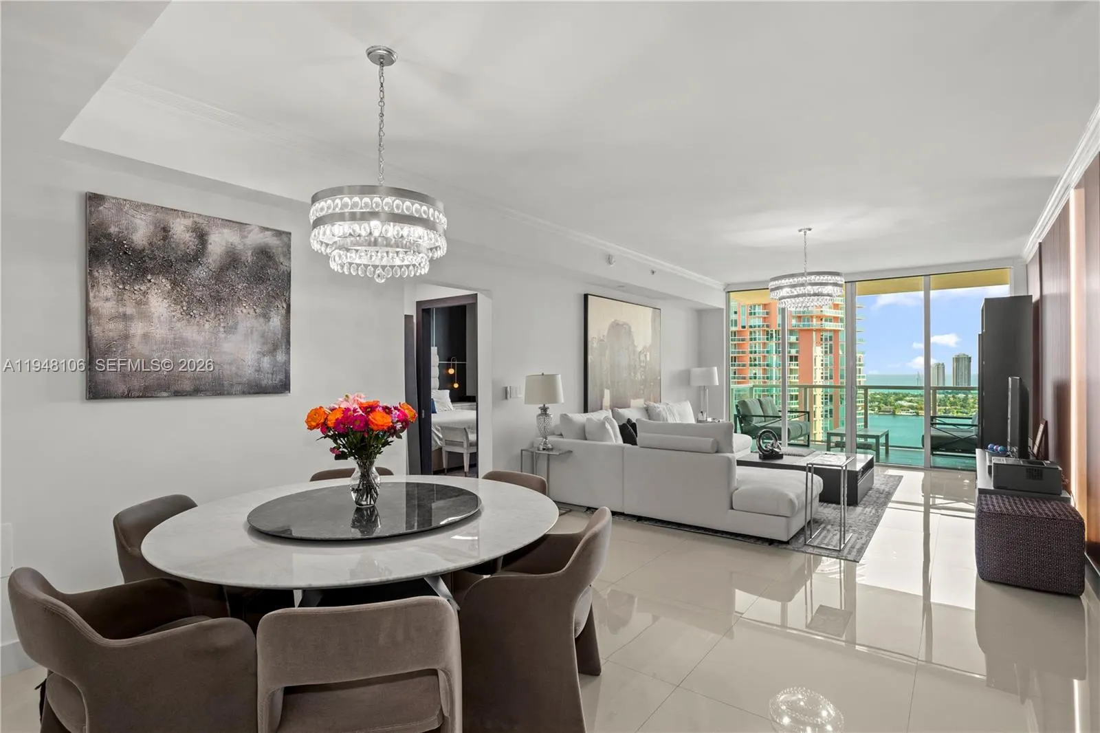Spacious 3-bedroom, 3-bath residence in Aventura Marina II offering 1,720 square feet of well-designed living space with beautiful Intracoastal and bay views. This fully renovated residence showcases custom doors and millwork throughout, offering a unique level of craftsmanship and design that distinguishes it from other units currently on the market. Situated on a high floor, the unit features an open-concept layout with floor-to-ceiling windows, filling the home with natural light while connecting seamlessly to a private elevated balcony, ideal for indoor-outdoor living. The kitchen opens to the living and dining areas, creating a functional space for everyday living and entertaining. The primary suite offers a spa-style bathroom and ample closet space, while additional bedrooms provide flexibility for guests, family, or a home office. Aventura Marina II is a full-service waterfront community offering 24-hour security, doorman, fitness center, pool, clubhouse, business center, and more. Prime location, conveniently located near Aventura Mall, dining, parks, and major roadways.