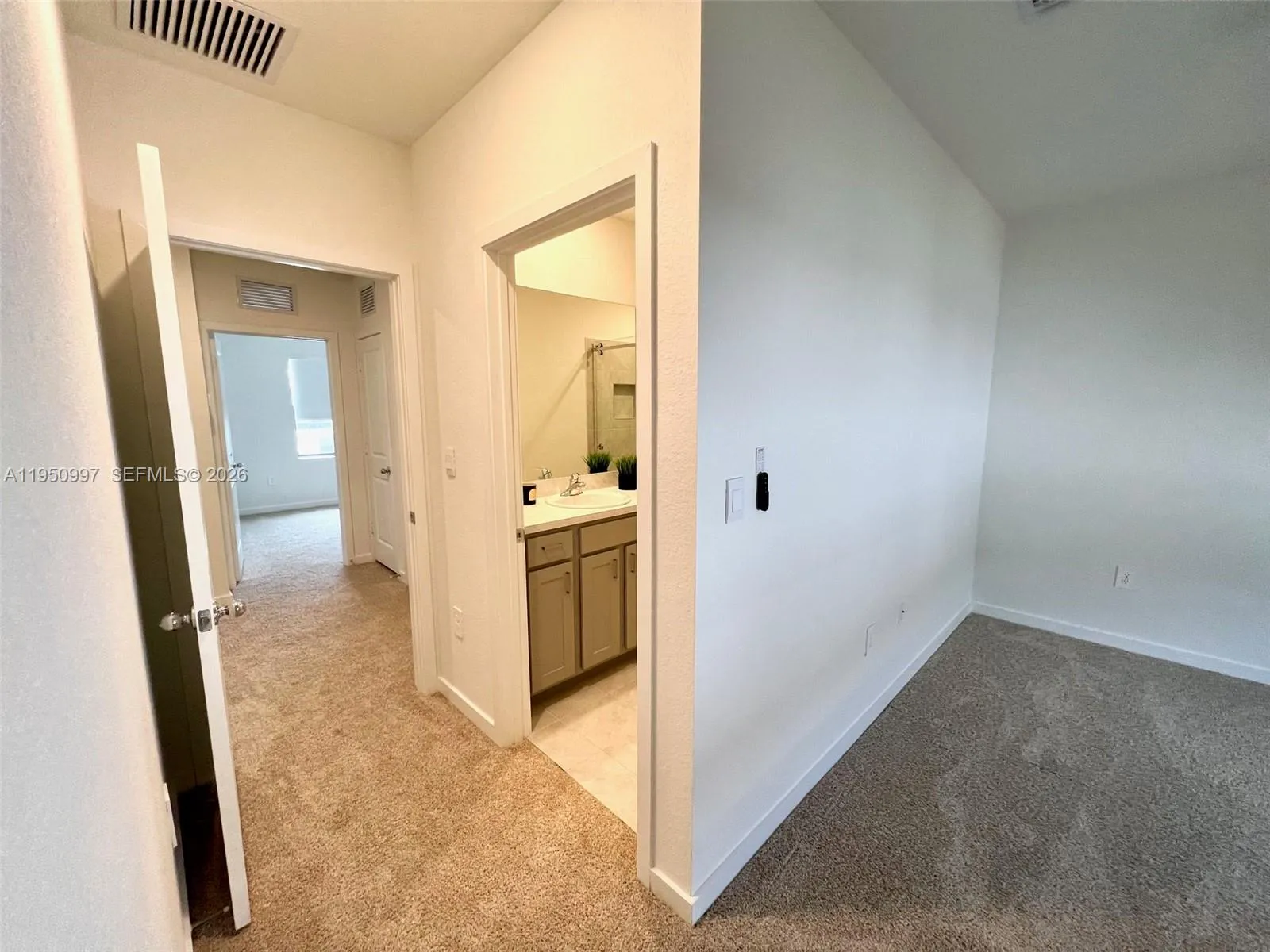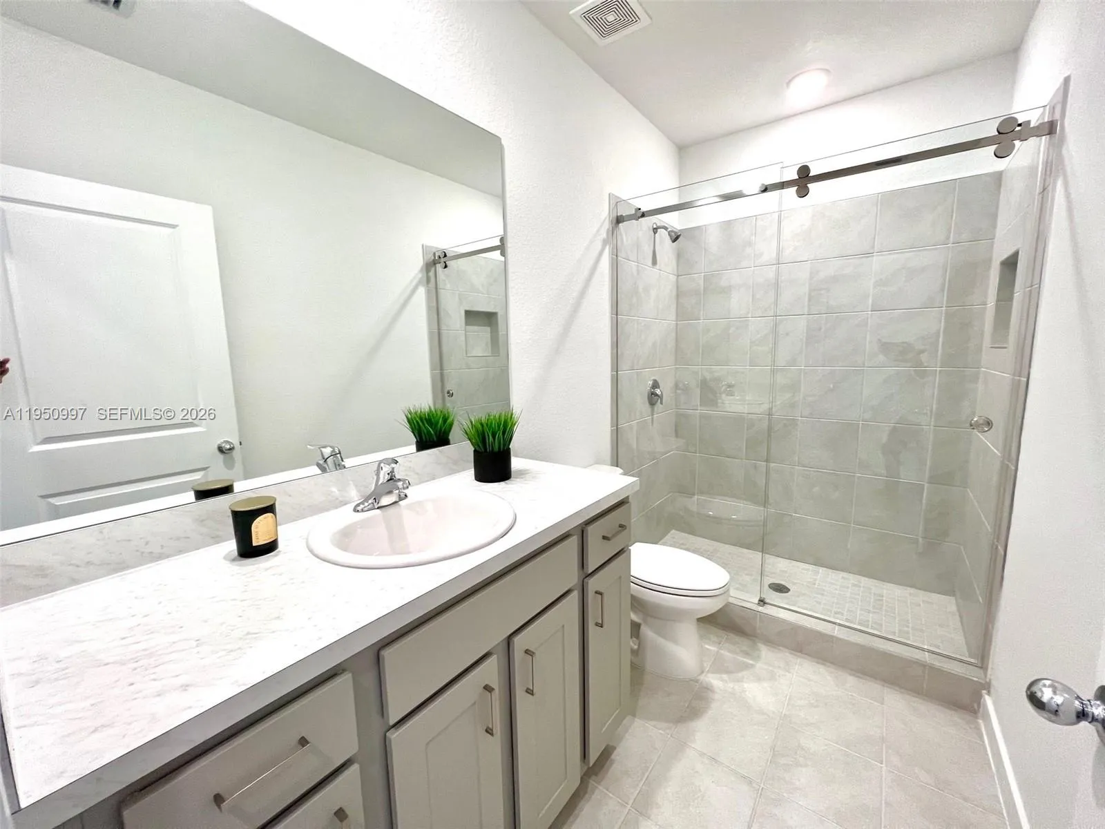 Beautiful 3 Bedrooms 3 Baths with exceptional details.On the ground floor,ceramic floor, w/a complete room that includes a full bathroom.Kitchen features stainless steel appliances and 2 fridges. 2 fixed parking spaces right at your front door ensuring comfort for you and your loved ones. Prime location next to BJS, with immediate access to shopping centers, Florida Keys Outlet Mall, Turnpike & US-1. Main bedroom has a wall to wall custom made closet, 2nd bed a walking closet. All baths has glass shower doors, new blinds through the home, fans & smart home system. Large fenced in backyard w/new Turf surface a delightful addition providing ideal space for recreation,relax+easy maintenance.This house is truly a marvel.Full size Washer/Dryer. Complex have a pool, kids playground and more! Ready to move.