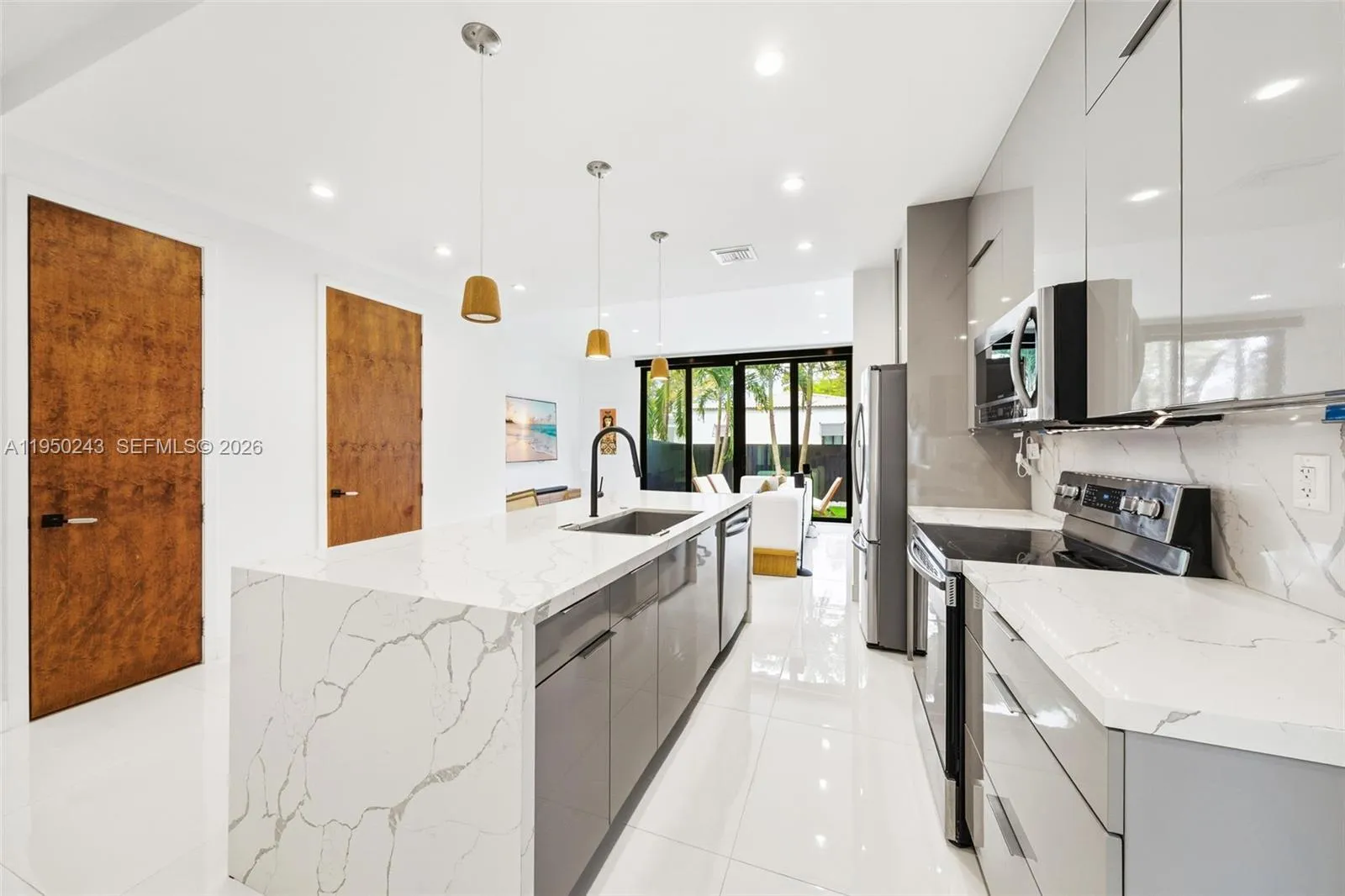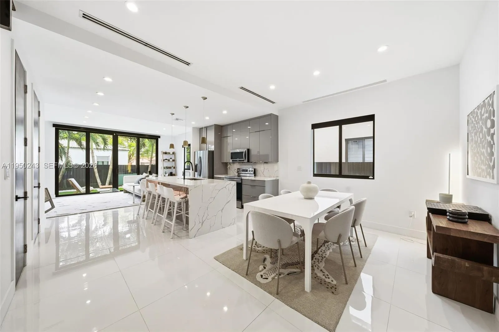 Discover elevated urban living in this turnkey townhouse completed in 2021. Offering 3 bedrooms, 3 full en-suite baths, and 2 half baths, the home features a seamless open-concept layout and a sleek modern kitchen with a waterfall island. Thoughtful upgrades include solid wood doors with hidden hinges, electronic shades, custom walk-in closets, linear A/C vents, and abundant natural light throughout. Enjoy two private outdoor retreats: a turfed ground-level yard and a full-length rooftop deck with a private pool, wet bar and half bath—perfect for entertaining with city and sunset views. Additional highlights include a one-car garage and a spacious second-floor laundry room with side-by-side washer/dryer and storage. Ideally located one block from Coral Way and minutes from Miracle Mile, Giralda Plaza, the Plaza and the best of Coral Gables dining and shopping.