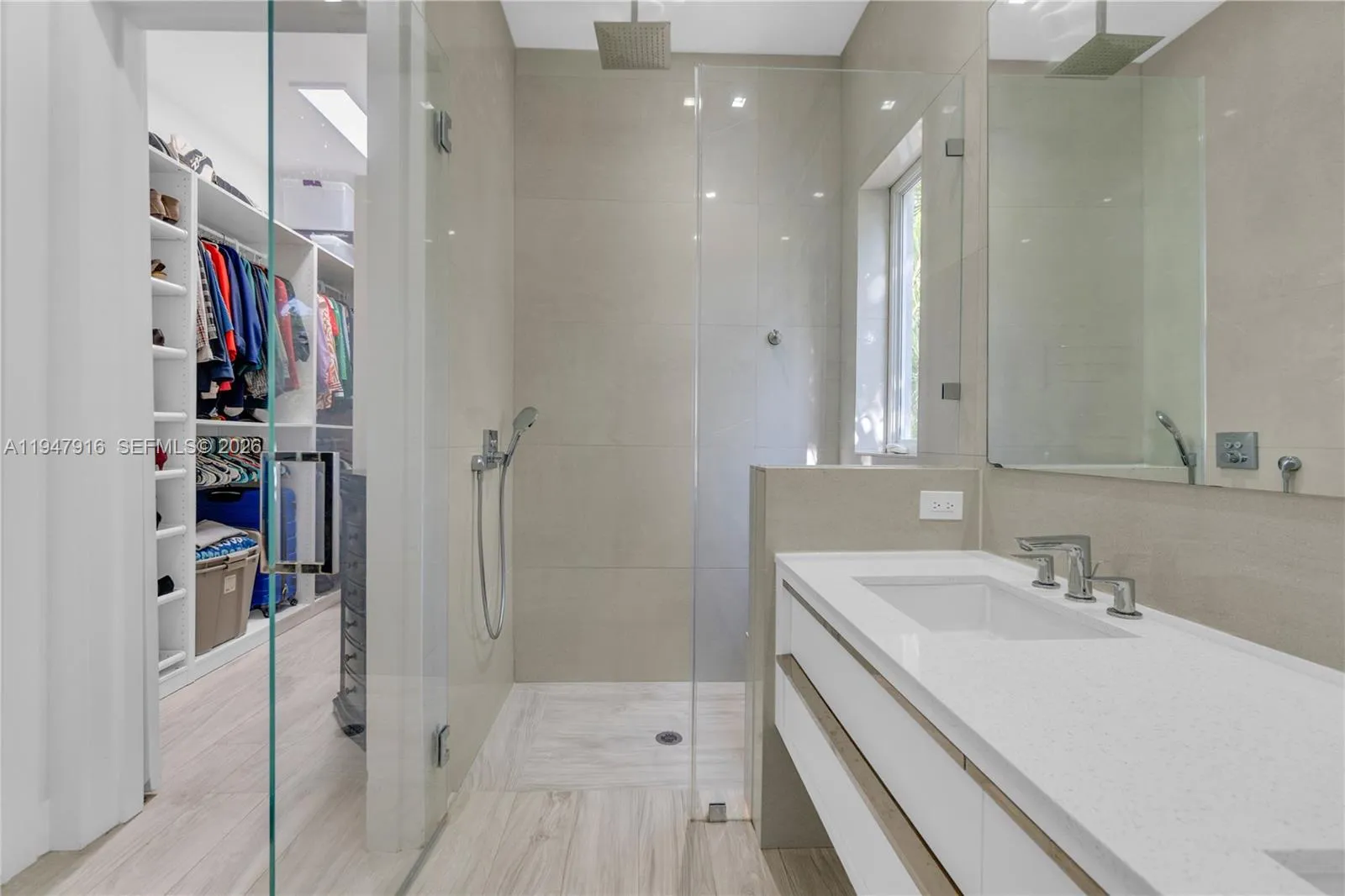 Welcome to one of the most spectacular pool homes in lush Biscayne Park, set on a quiet, tree-lined street and within WALKING distance to Miami Country Day School—one of Miami’s most prestigious and top-rated private schools. This exceptional location offers families the rare luxury of a true walk-to-school lifestyle while enjoying the charm, safety, and strong community Biscayne Park is known for.rnrnBeautifully remodeled with no expense spared, this 2,800 SF residence offers 5 bedrooms and 3 baths with soaring ceilings, expansive living spaces, and a spacious primary suite featuring a large walk-in closet and serene pool views. The chef’s kitchen with custom German cabinetry overlooks a meticulously landscaped backyard, creating a seamless indoor-outdoor flow ideal for entertaining and everyday living.rnrnStep outside to your private tropical oasis complete with a resort-style pool, covered patio with BBQ, and tranquil garden setting enhanced by a MosquitoNix system for year-round outdoor enjoyment. Recent upgrades include two new HVAC systems and a new pool heater (2025), custom closets (2025), updated fans and chandeliers (2024), and new front and back irrigation (2023). Additional highlights include custom bathrooms, tile floors throughout, a private laundry/utility room, and proximity to the neighborhood park and community center on 113th Street.