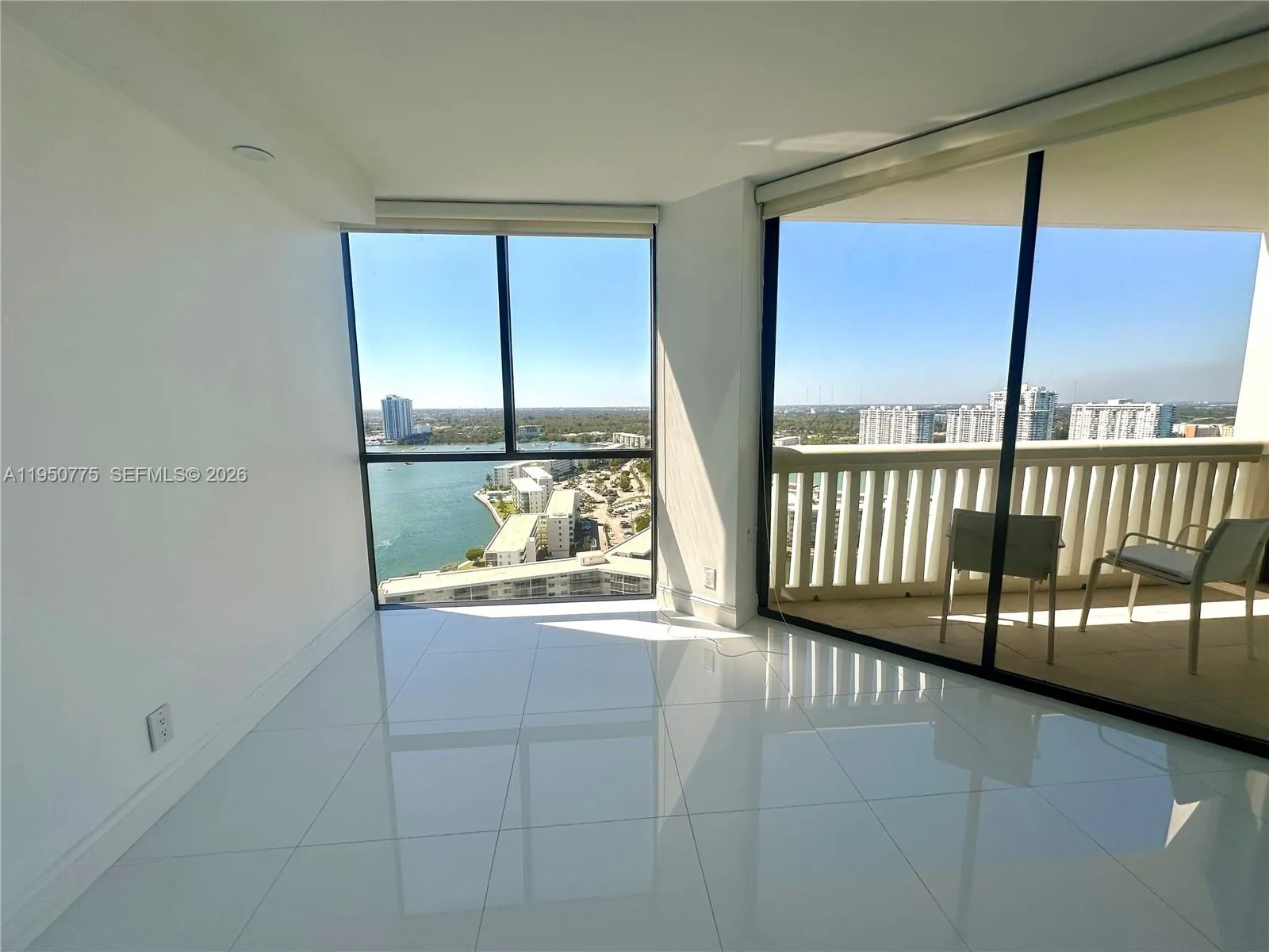 GORGEOUS HIGH FLOOR 2/2 unfurnished unit with tile floors throughout, stainless appliances, oversized master bedroom with amazing closets. Beautiful water view from bedroom and terrace. Gorgeous building, renovated w/ wonderful amenities as gym, bbq area, private pool, billiards/game room, party room, tennis, concierge, 24h valet.