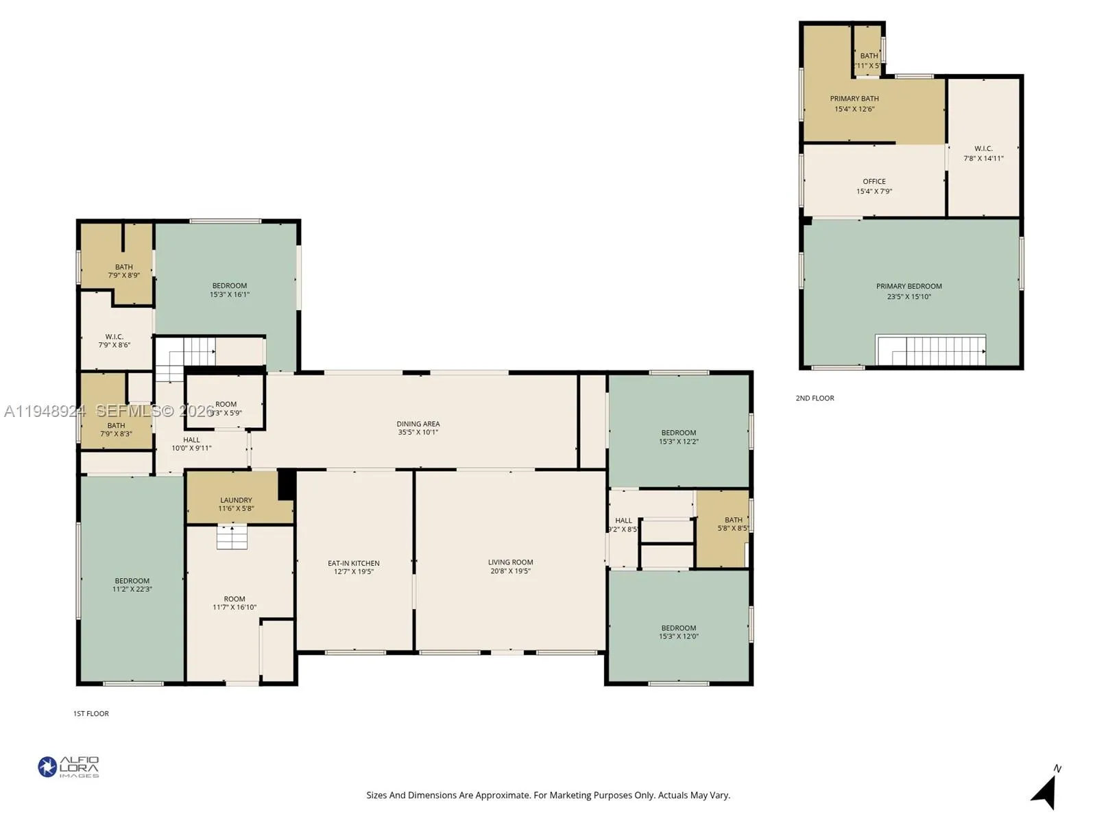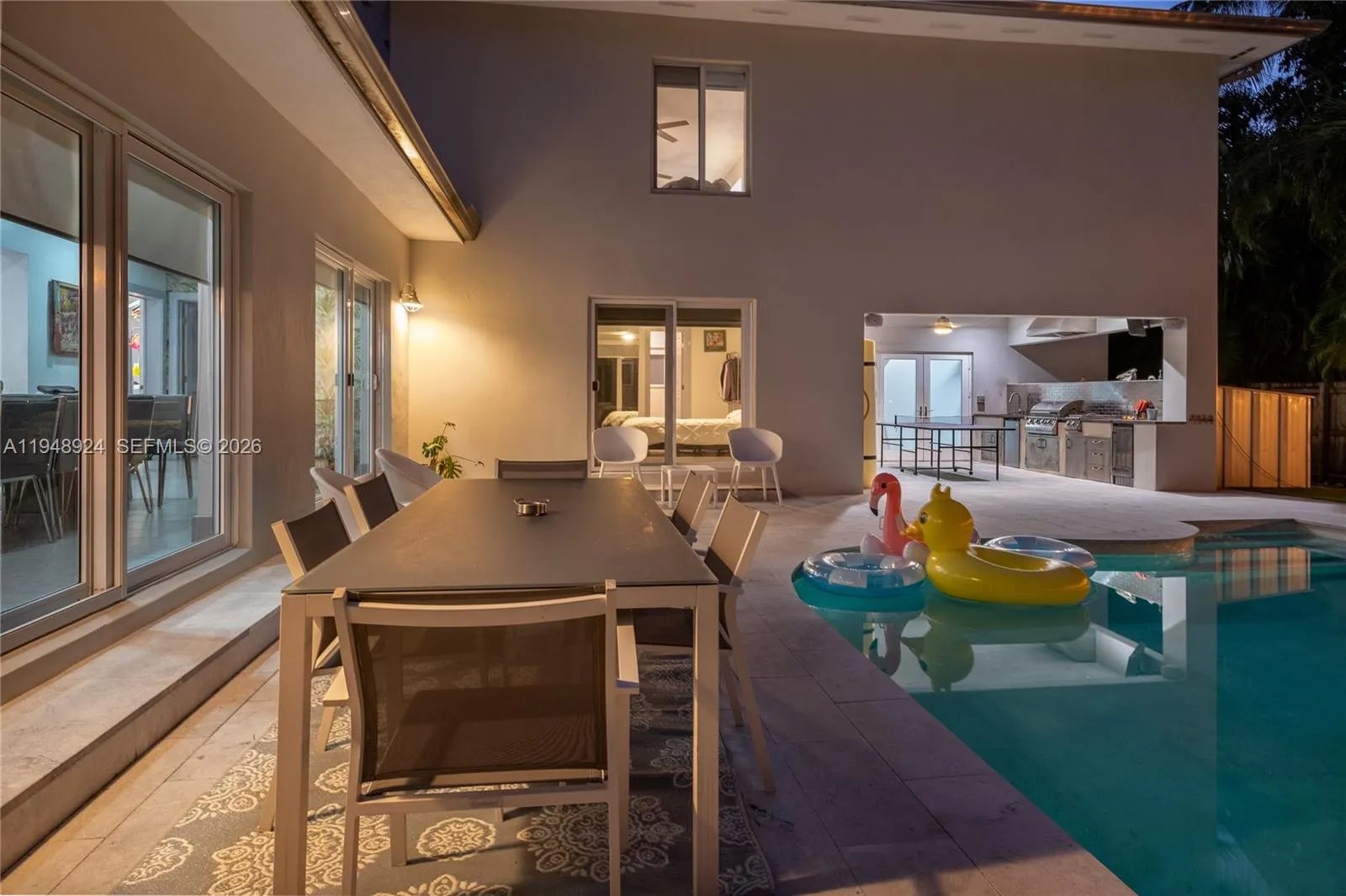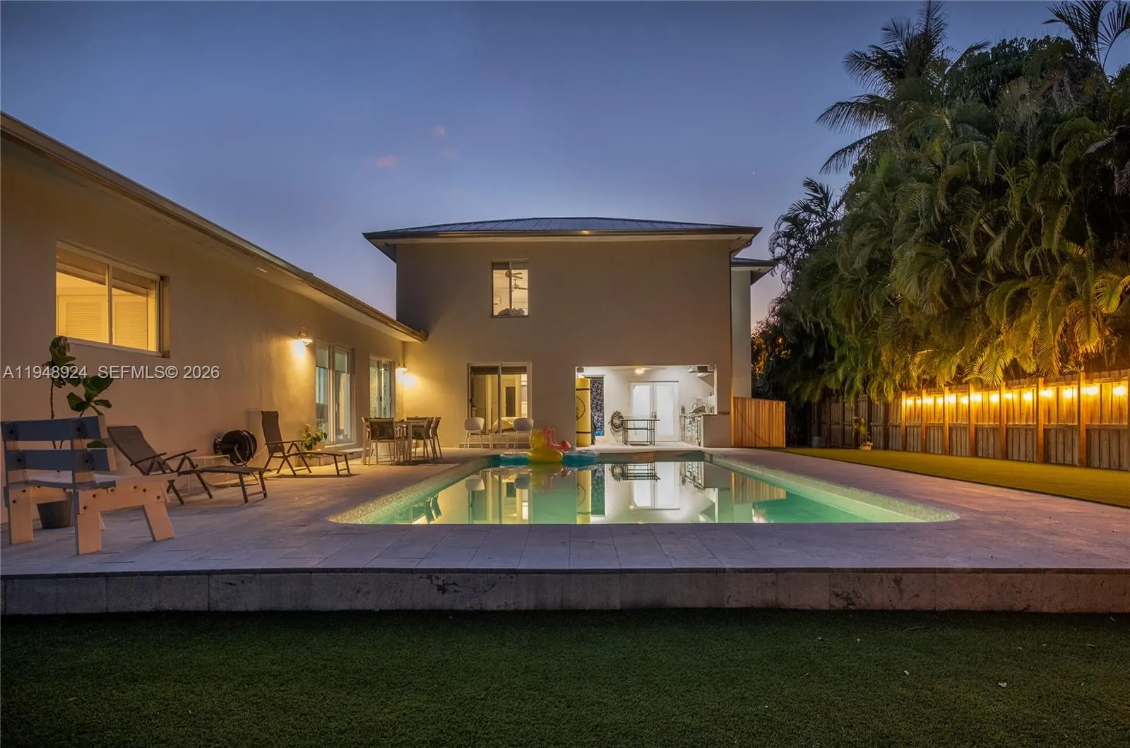 Modern, move-in ready private oasis on an oversized corner lot in the heart of Biscayne Park. This spacious 5-bedroom, 5-full-bath home is thoughtfully designed for today’s lifestyle—offering comfort, flexibility, entertaining, and work-from-home ease. The fully fenced backyard is all turf and offers exceptional privacy and room to enjoy, while the large pool, covered patio, outdoor kitchen, and full pool bath create a seamless indoor-outdoor setting ideal for gatherings, BBQ’s, and poolside living. The versatile layout features four bedrooms on the first floor and a private primary retreat spanning the entire second level. The upstairs suite offers a spa-like bath with soaking tub, separate shower, private water closet, and a generous walk-in closet, plus additional space perfect for a home office, gym, nursery, or expanded wardrobe. Living spaces include a formal living room, expansive family room overlooking the pool and green space, and a large eat-in kitchen with abundant storage and room for a full dining table—ideal for everyday living and entertaining. Additional highlights include impact windows, updated plumbing and electrical, natural gas, full-house generator, indoor laundry room, oversized storage room off the kitchen, and a full workshop with potential for conversion to guest or staff quarters. Ideally located near parks, gyms, and top private schools including Miami Country Day, St. Rose of Lima, Montessori, and Cushman. Biscayne Park remains a true gem.