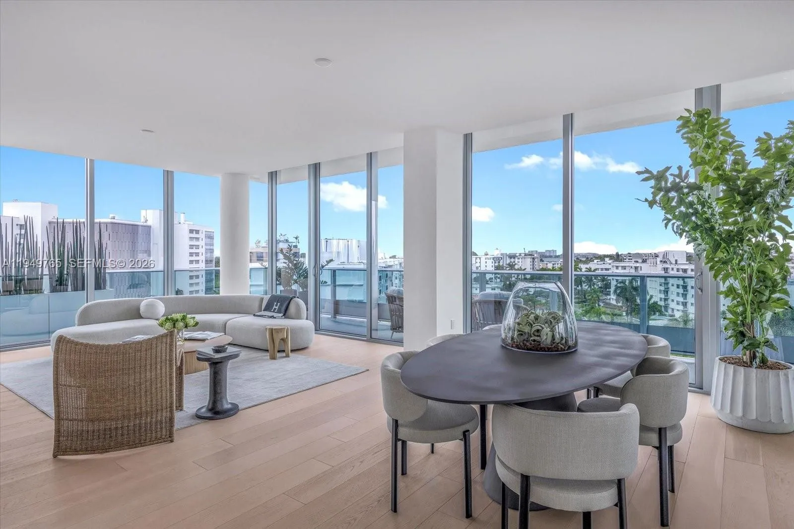 The Parkview Penthouse at La Baia South is a quiet, elevated residence where proportion, materiality, and light shape the design. Located on the eighth floor, this three-bedroom residence with den spans 2,068 interior square feet, complemented by 399 square feet of wraparound private outdoor space. Interiors feature imported European wide-plank wood flooring, ten-foot ceilings, and floor-to-ceiling, impact-resistant glass that brings in natural light and frames park-facing views with select water sight-lines from the terrace. The kitchen is thoughtfully integrated into the living space with custom European cabinetry, quartz stone countertops, a pantry, and a full Miele appliance package. Fixtures and finishes throughout the residence are curated by New York–based Durukan Design, with Hansgrohe fittings providing a refined, modern finish. Bathrooms are appointed with natural marble stone flooring, glass and chrome showers with dual rainfall showerheads, and custom European vanities. In-residence laundry includes a Miele washer and dryer, completing a residence defined by architectural clarity and carefully selected materials. La Baia is the latest project from visionary New York developer Ian Bruce Eichner who is credited with placing Miami Beach’s prestigious South of Fifth neighborhood on the map with the arrival of the Continuum South Beach. Upper Penthouse 02 comes with storage unit. Dock slips available for sale. Sold separately.