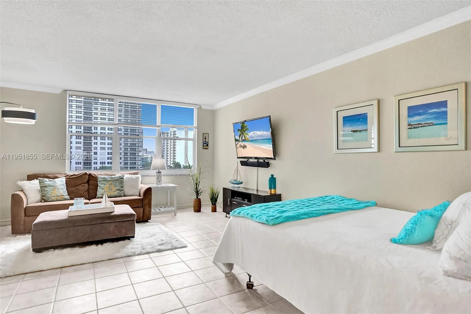 Available March 11, 2026. Annual rental. Bright and spacious furnished Studio with tropical views available for rent. This studio does not have a balcony. Experience The Wave Lifestyle – one of the finest and most exclusive Luxury buildings on the Beach for the price value. Great amenities: Newly remodeled Resort style pool deck with lash palm trees, fountains, Jacuzzi and GYM overlooking the ocean and complimentary Beach services