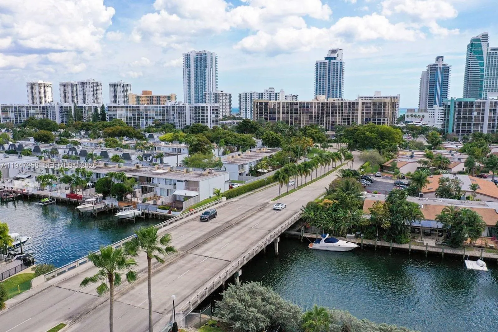 Located in the desirable Three Islands community, just a 15-minute walk to the beach and local restaurants. This 2-bedroom, 2-bath layout, features one of the best split-floorplan lines in the building. The unit has been tastefully remodeled throughout, showcasing a modern renovated kitchen with granite countertops, stainless steel appliances, custom cabinetry, and a stylish blue tile backsplash. The oversized living and dining areas flow seamlessly toward large sliding doors that open to an expansive balcony with stunning city and water views. The community offers exceptional amenities including 4 tennis courts, a fitness center, 2 heated pools, sauna, BBQ area, and a marina with dock space available upon association request. Beautifully landscaped grounds and a resort-style atmosphere make this the perfect place to call home.