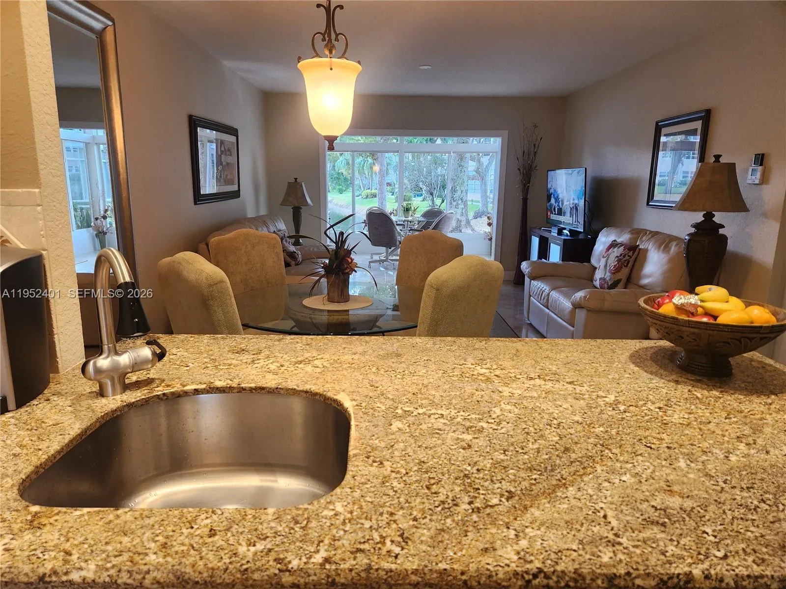 Stunning first-floor condo featuring 2 master bedrooms with a beautiful lake view, located in a quiet corner setting. The corner location adds extra windows, filling the home with natural light. Open kitchen with granite countertops. Enjoy direct access from the Florida room to the walking area, pool, community amenities, and lake. Tile flooring throughout. Upgraded bathroom with spacious walk-in shower and independent entrances for each bedroom.55+ Community .Al furniture and accessories are included in the sale.