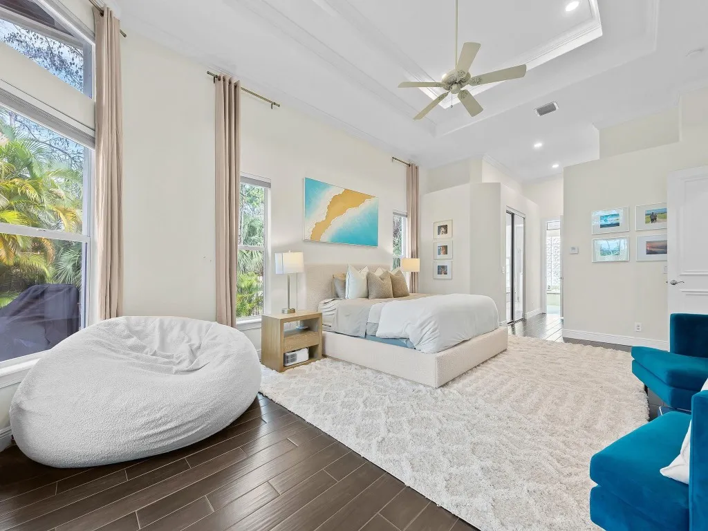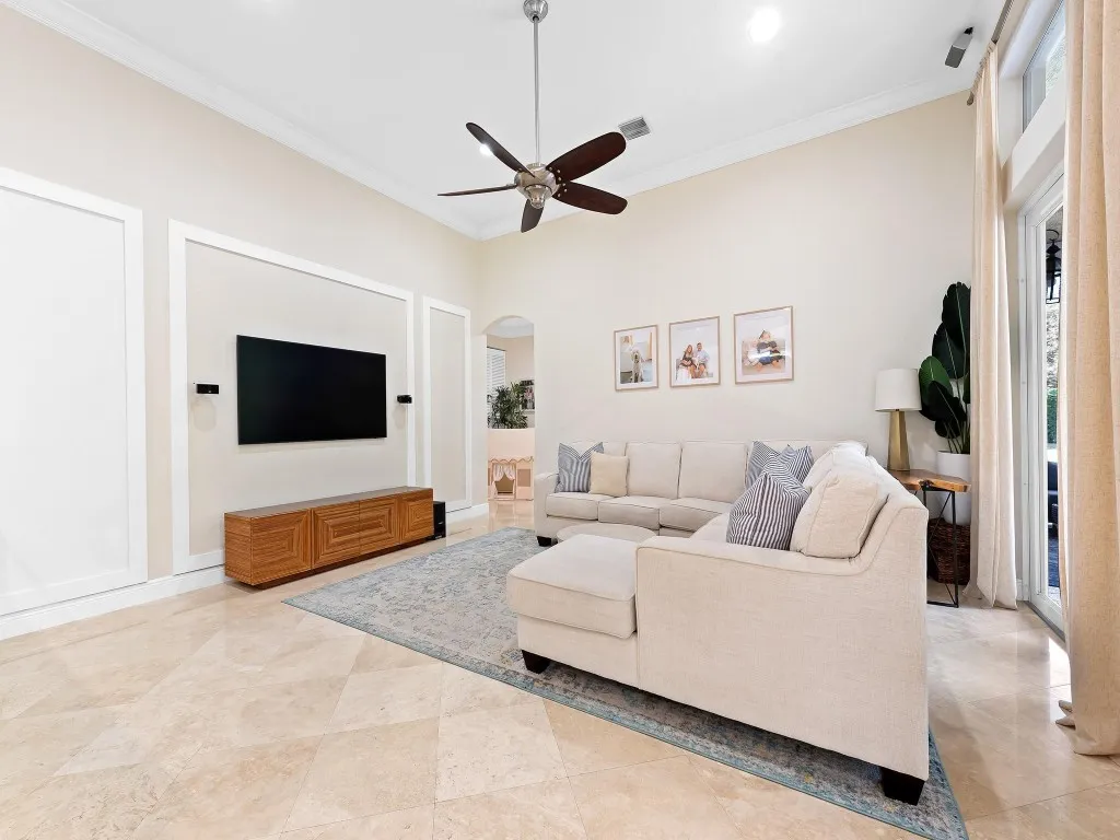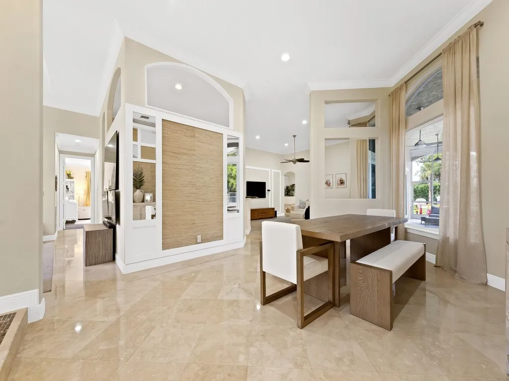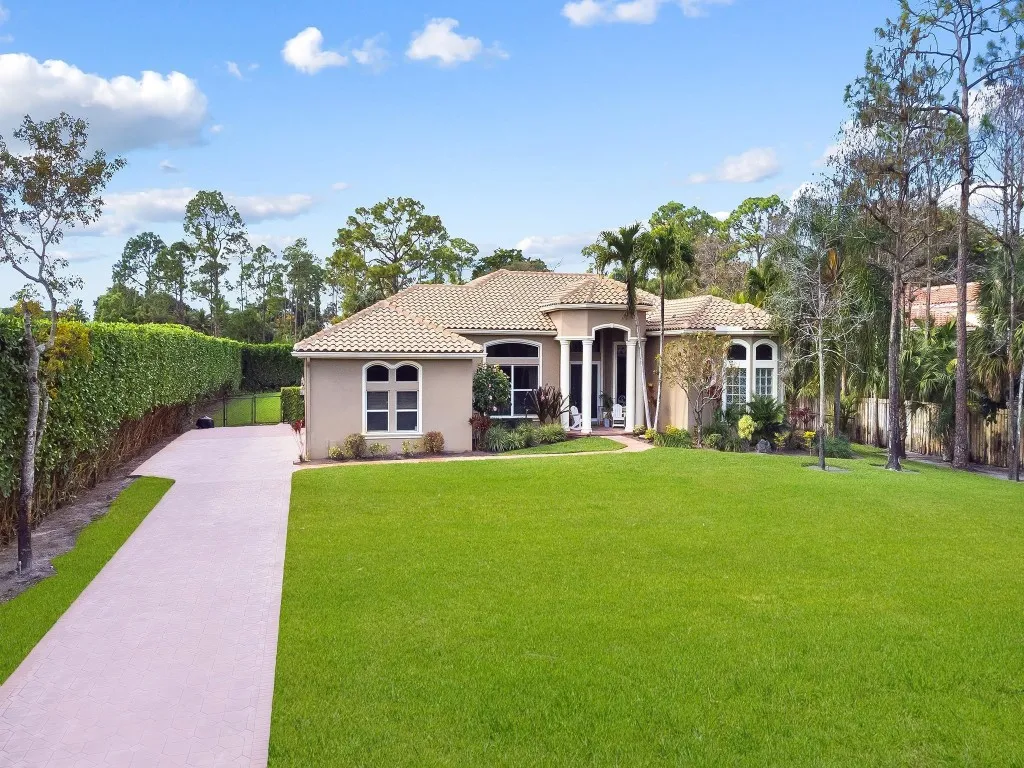 Welcome to 5755 NW 72nd Way, in the highly sought after community of Pinetree Estates, nestled on a lush 1-acre lot. Spanning 3,232 Sq. Ft., this meticulously maintained residence boasts 14-ft voluminous ceilings throughout, creating a grand and airy ambiance. Step inside to find elegant marble flooring in the main living areas, complementing the spacious floor plan. The grand primary bedroom offers a private retreat with luxurious finishes, while the additional bedrooms provide comfort and versatility for family and guests. Designed for both relaxation and entertainment, the outdoor space features a resort-style pool and spa with a travertine pool deck. Enjoy an active lifestyle with the newly added sports court, ideal for pickleball and basketball.