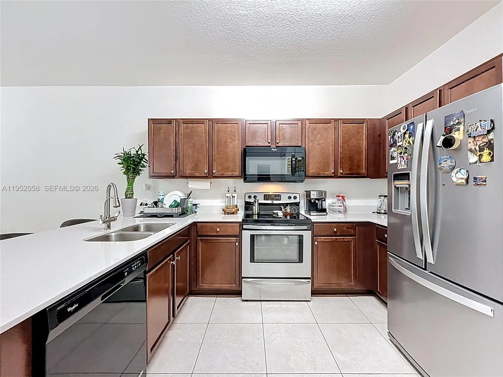 Welcome to this well maintained two-story condo located in a private, gated community with a pool. Featuring 2 bedrooms and 2.5 bathrooms, this home offers a spacious, functional layout with tile flooring throughout the living areas and laminate flooring on the stairs. The kitchen showcases Italian wood cabinetry with sleek, modern countertops, ideal for everyday living and entertaining. Washer and dryer inside the unit, two assigned parking spaces, and a central location with easy access to FIU, MIA, and major expressways.