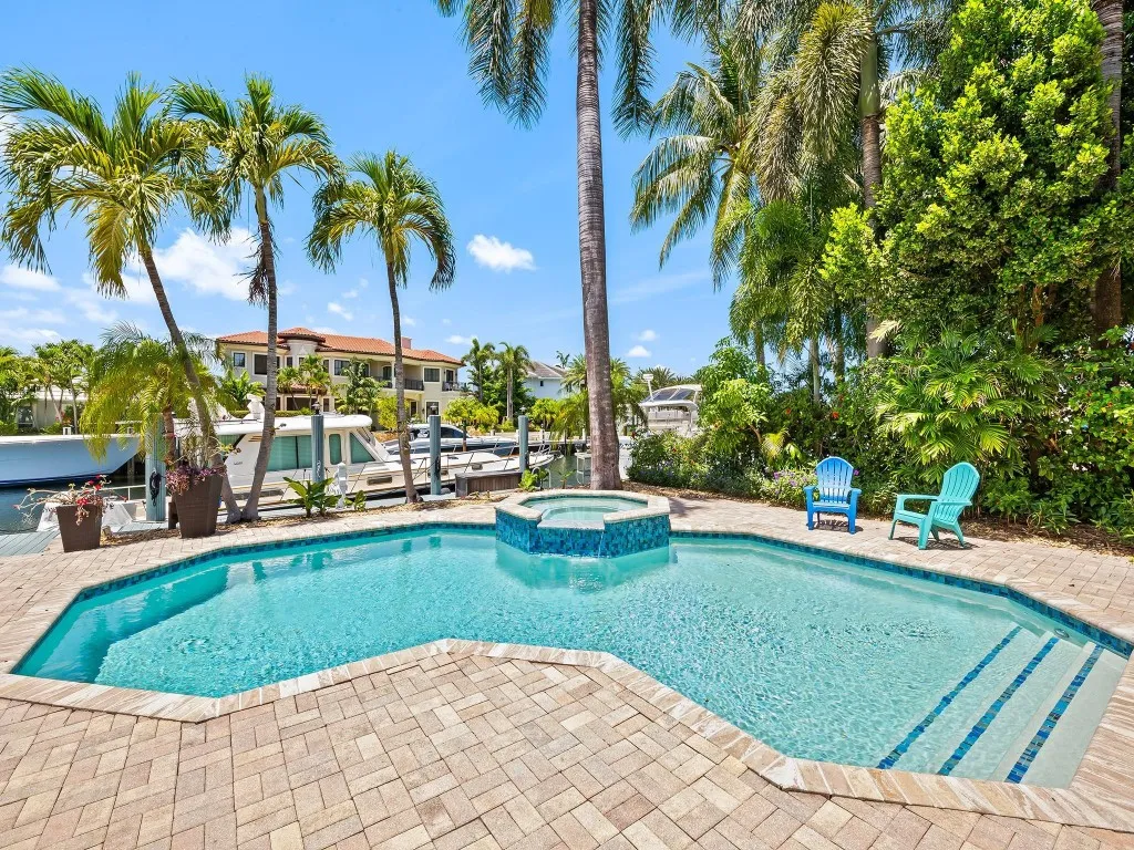 Discover this exceptional 4-bedroom, 4.5-bathroom estate located on one of Lighthouse Point’s most desirable streets, just minutes from the Hillsboro Inlet. Set on an expansive 11,000 SF lot this home is a boater’s dream with 100 feet of deepwater frontage, offering quick, bridge-free access to the ocean. With over 4,500 square feet of living space, the home features soaring ceilings, generously sized ensuite bedrooms that provide both comfort and privacy, partial high impact windows and doors, an expansive pool deck with a summer kitchen, + a newly turfed area. Enjoy the Florida lifestyle to the fullest with a backyard that invites relaxation and recreation, complete with panoramic water views. The location is unmatched, just a 5 minute walk to Port 32 Marina & Nauti Dawg restaurant.