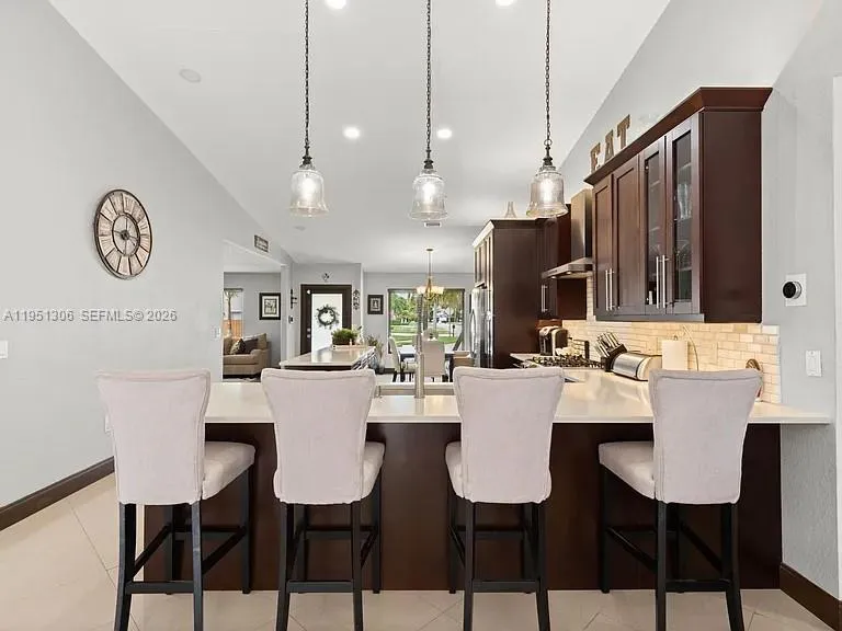 Available for rent is a stunning, fully modernized single-family pool home located in the highly desirable Oak Creek subdivision. This turnkey residence features a 2-car garage and elegant porcelain flooring throughout. The home boasts a 2021 roof, impact windows and doors, a Nest thermostat, and full perimeter security cameras accessible from your phone.The modern kitchen is equipped with 30mm quartz countertops, a travertine backsplash, stainless steel appliances with hood, a gas range, and a gas water heater. Outdoors, enjoy a heated swimming pool and a separately heated jacuzzi, along with a gazebo ideal for entertaining. Don’t miss this exceptional opportunity to rent a truly move-in-ready gem.
