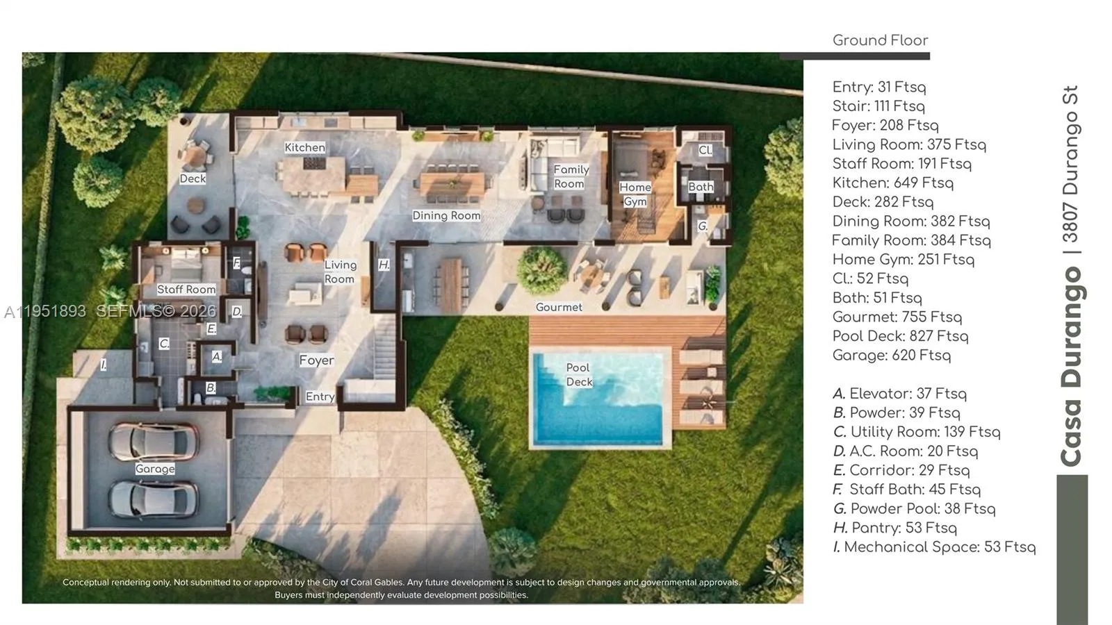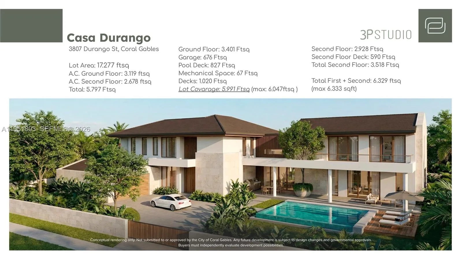 Rare opportunity to build a custom estate or luxury investment property in the heart of Coral Gables. This expansive 17,300 square-foot corner lot is located in the prestigious Golden Triangle, just one block from the iconic Biltmore Hotel. The existing structure will be demolished prior to closing, offering a true blank canvas for your vision. The oversized corner lot provides exceptional flexibility for setbacks, outdoor living, and pool design.rnrnSellers have commissioned conceptual renderings for Casa Durango, a 6,333 square-foot tropical modern residence featuring 7 bedrooms, 7 full bathrooms, 1 half bath, a 2-car garage, outdoor kitchen, and swimming pool—showcasing the scale and elegance the lot can accommodate. Renderings are conceptual and has not been submitted to or approved by the City of Coral Gables. Alternatively, design and build a fully custom home tailored to your lifestyle in one of South Florida’s most desirable neighborhoods. A full package of concept renderings and the property survey is available upon request.rnrnIdeally situated near Riviera Country Club, Miracle Mile, Merrick Park, and the Biltmore Hotel Golf and Tennis Center, with convenient proximity to top public and private school options, as well as easy access to Miami International Airport, approximately 15 minutes away.