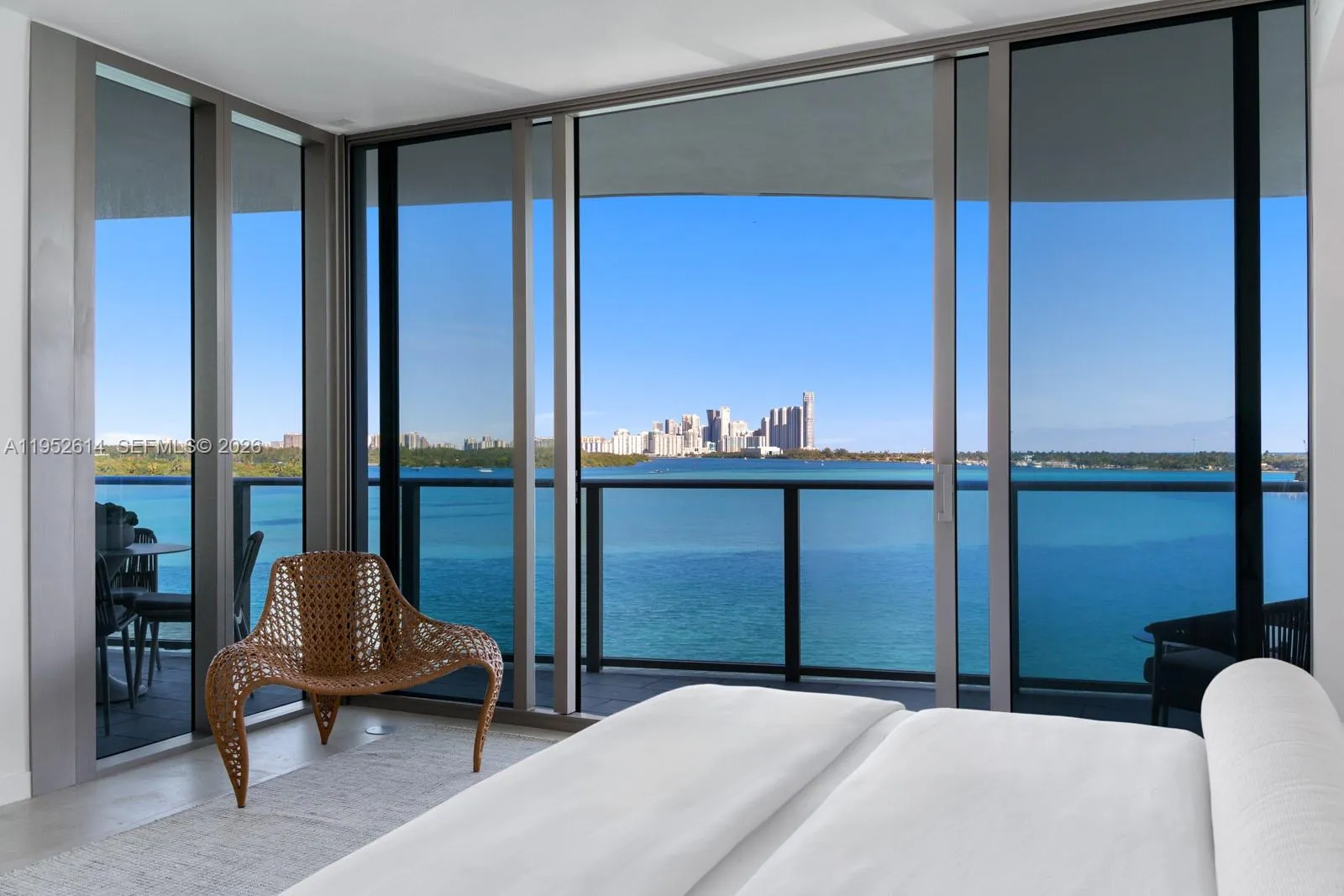 Step Inside With Me! Presenting a corner residence at Onda Residences—Bay Harbor Islands’ newest construction bayfront address. Never lived in, this light-filled home is surrounded by turquoise waters at every turn. Offering 3 en-suite bedrooms, a spacious den, and expansive terraces framing open bay views. Floor-to-ceiling impact glass, a private elevator foyer, Italian porcelain flooring, and custom doors set a polished tone throughout. The Snaidero kitchen is finished with marble counters and Miele appliances, while spa-like baths feature marble finishes and Italian cabinetry. Onda Residences’ outstanding amenities include a grand pool, Technogym fitness center, wellness spa, and EV charging station — plus 2 parking spaces, storage, and 24-hour valet. Moments from Bal Harbour Shops, Four Seasons Surf Club, and the beach.