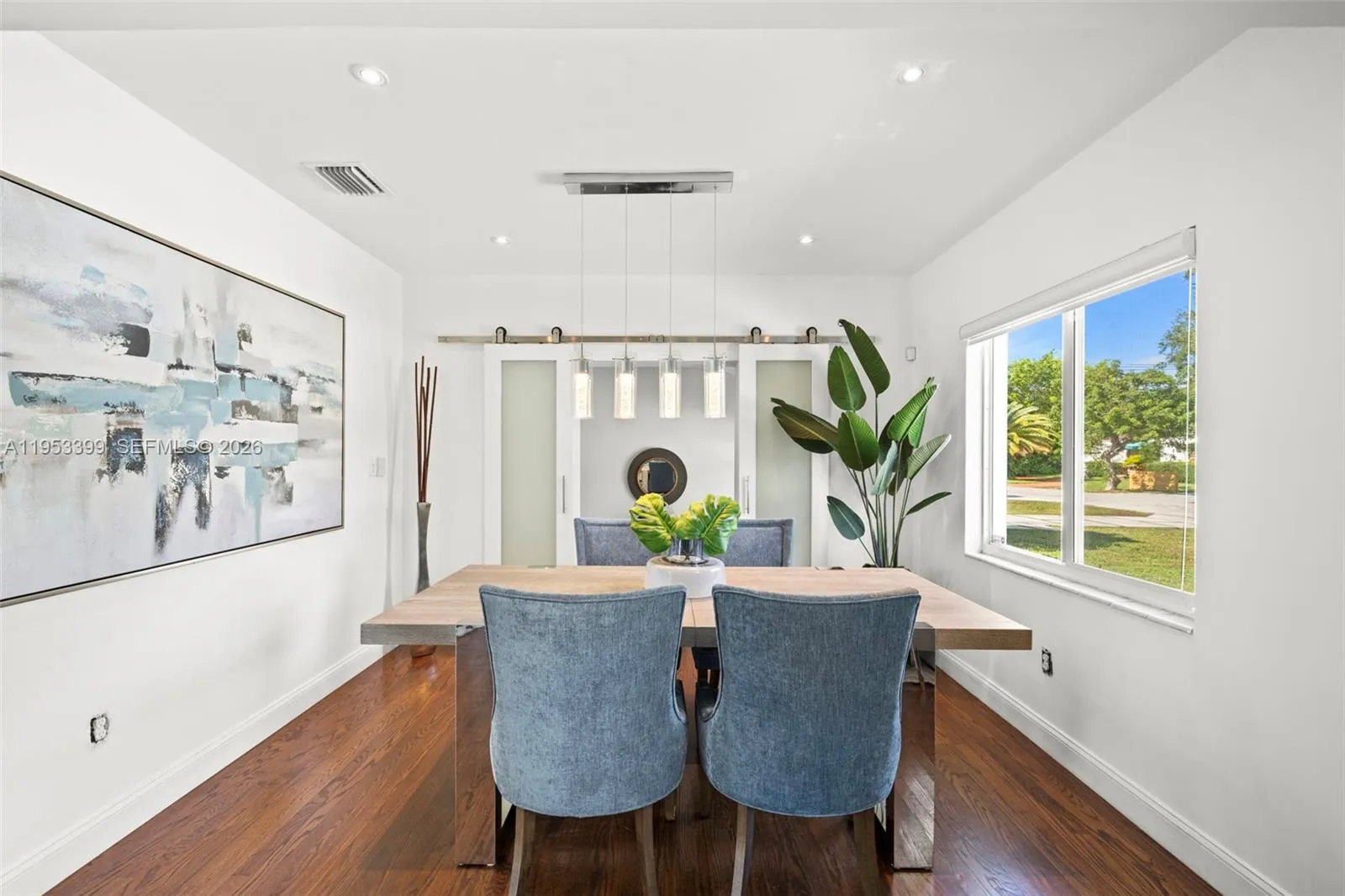 Welcome to the Sunshine Abode, a beautifully updated 2bd/1ba + large den/office located on an adorable Miami Shores cul-de-sac. Brimming with curb appeal, this lovely home flows east to west with two bedrooms and bathroom on the east and converted, step-down 3rd bedroom on the west. The 3rd bedroom could serve as an oversized primary suite, TV room, office or gym. The lush and ultra private backyard features a fence, large patio, newer shed and healthy & abundant avocado tree. Magical outdoor lighting creates an enchanting evening atmosphere. Room for a pool. Beautifully remodeled bath, kitchen and impact windows throughout. Ample parking in the circular front driveway. Ripe avocado tree in backyard. Available for immediate occupancy.