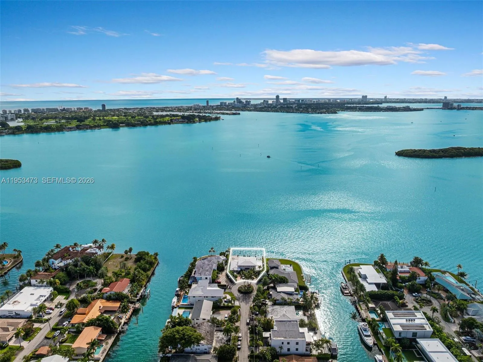 Positioned on an exceptional 12,170 square foot point lot with over 100 feet of pristine open bay frontage, this rare waterfront estate commands one of South Florida’s most extraordinary panoramic views. The vista extends from the Bal Harbour skyline, Indian Creek Island, across all of Miami Beach, culminating in the skyline of downtown Miami. rnThis unparalleled 180 degree perspective delivers constant drama and sparkling turquoise waters. Whether reimagining the existing residence with refined contemporary elegance or creating a custom built masterpiece from the ground up, the lot’s sweeping curves, generous waterfront exposure, and unobstructed views provide an ideal foundation for an estate of timeless prestige and distinction.