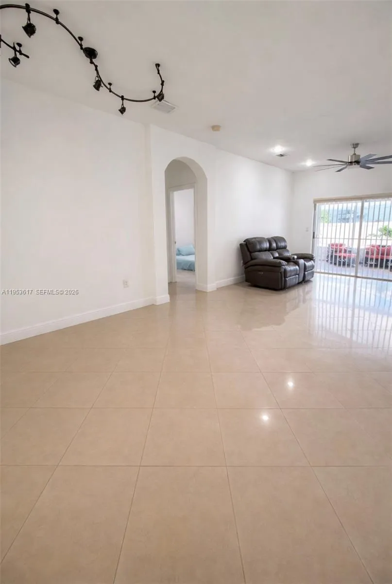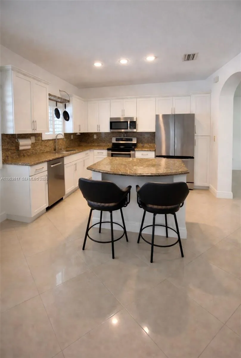 Beautiful 3-bedroom, 2-bath corner home offering tile flooring throughout and plantation blinds that enhance both style and functionality. The well-appointed kitchen features a center island, stainless steel appliances, and granite countertops, seamlessly connecting to the main living areas. The spacious primary bedroom offers a comfortable retreat and includes a main bathroom with a stand-up shower and dual sinks, along with a custom walk-in closet. This well-maintained residence also features two spacious terraces, perfect for outdoor entertaining and relaxing. The fully paved backyard offers low-maintenance living while enhancing the outdoor space. Enjoy resort-style living with a custom saltwater heated pool and jacuzzi, ideal for year-round enjoyment. The corner lot provides added privacy and curb appeal. No HOA, offering added flexibility and freedom for homeowners. A place to call home, where memories are made and every day feels like a getaway.