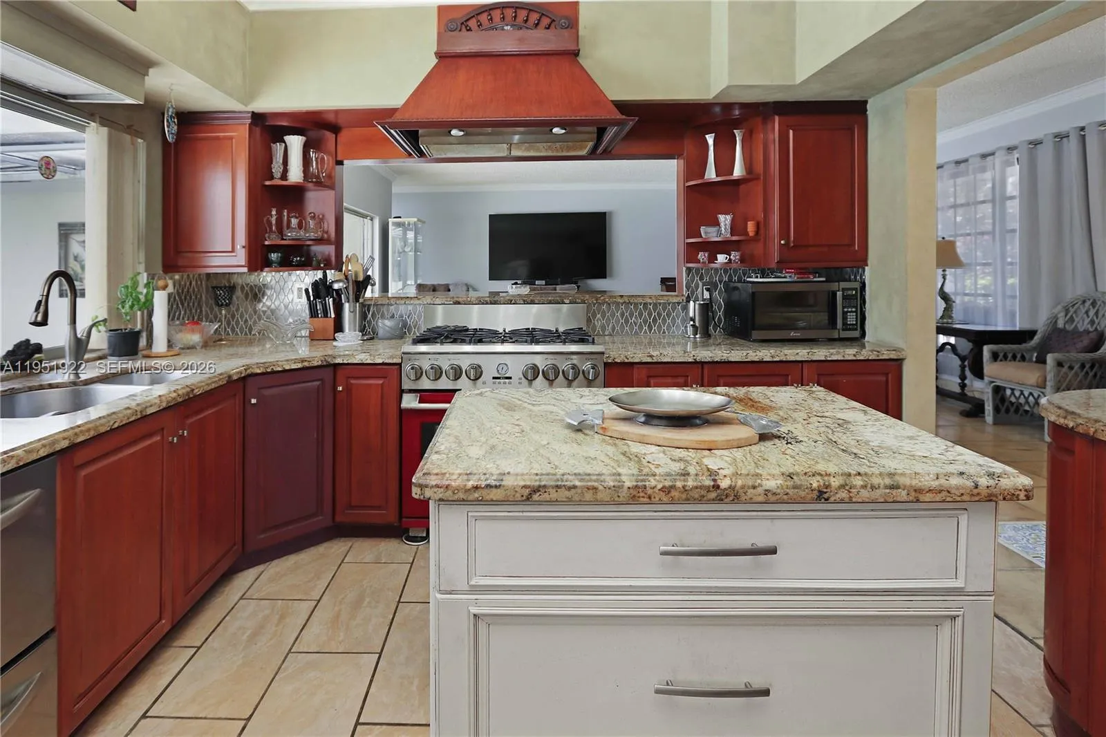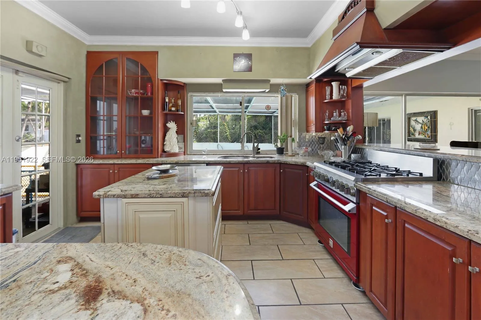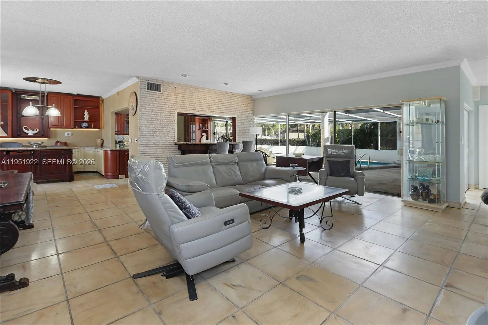 This exceptional 3-bedroom, 3-bath pool home with additional spacious den, sits on a large corner lot and offers a versatile layout ideal for entertaining, multi-generational living, or hosting guests. The main residence features 3 bedrooms and 2 baths, while a spacious 1-bedroom, 1-bath is currently being utilized as an in-law suite providing privacy and flexibility with an open-concept feel.rnrnFilled with natural light, the home boasts abundant windows and tile flooring throughout. The open kitchen flows seamlessly into the living area and is designed for serious cooking and gathering, featuring a professional 6-burner chef’s gas stove, custom granite countertops with seating, rich wood cabinetry, dishwasher, and a window overlooking the pool. Two movable kitchen islands add functionality and flexibility, making this space truly ideal for entertaining. A designated area for a formal dining room completes the interior layout.rnrnStep outside to enjoy true South Florida living with a tile-finished pool, covered and screened patio, and a fully equipped outdoor kitchen—perfect for hosting year-round. Additional features include a laundry room, circular driveway, and generous outdoor space on an oversized lot. A bright, open home with endless possibilities, this property combines comfort, space, and lifestyle in a highly desirable setting.