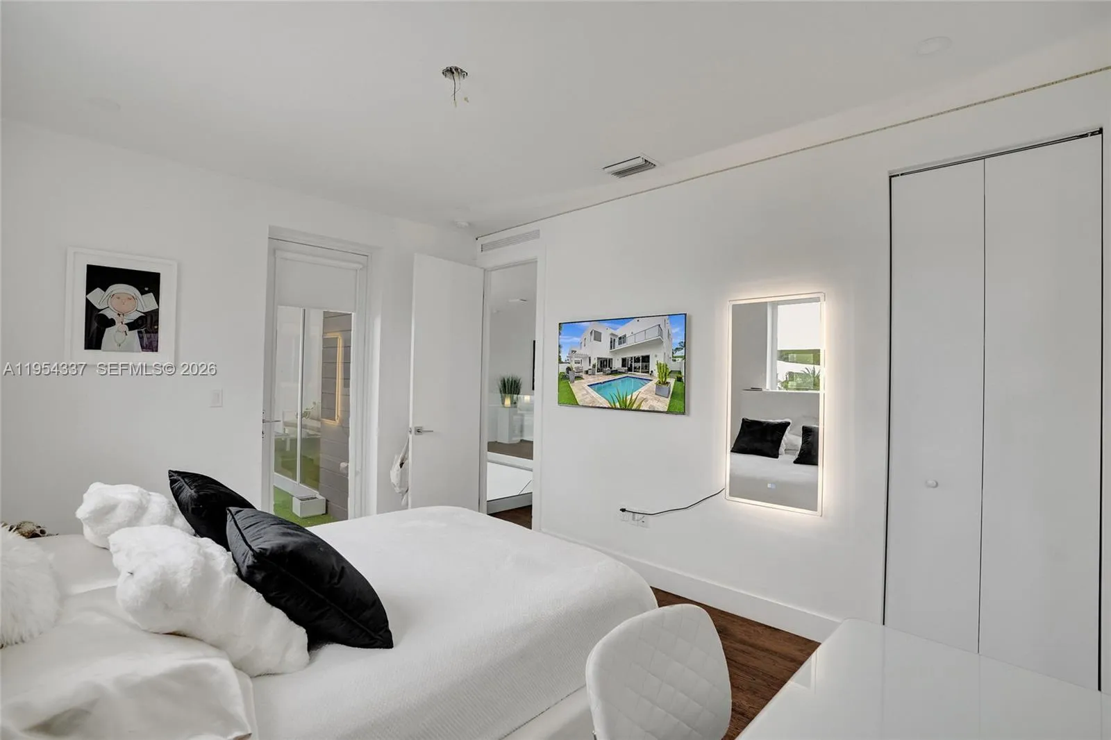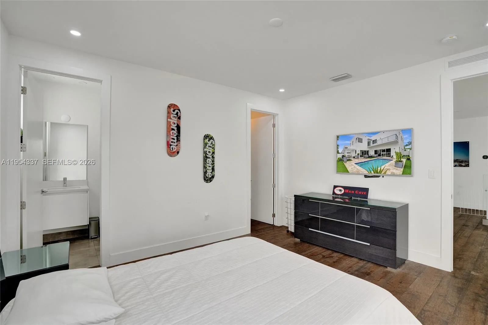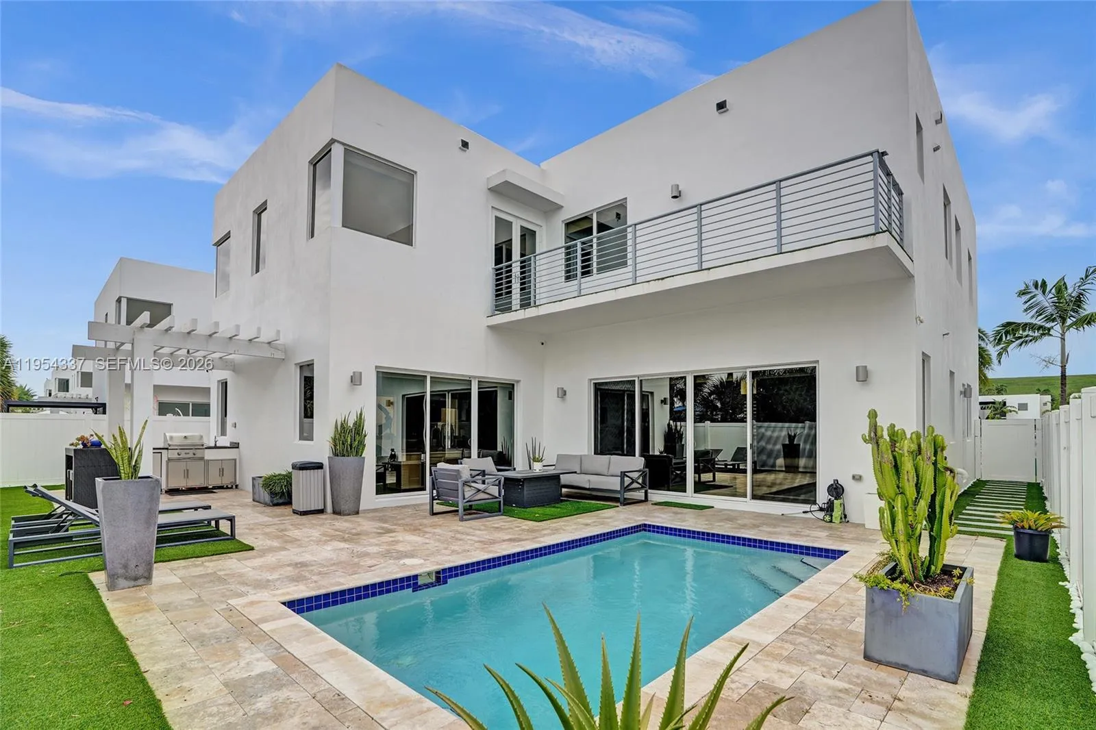Nestled in a tranquil and family-friendly neighborhood, this stunning modern home boasts a prime location, just minutes from Palmetto and Turnpike highway and a short stroll from a convenient shopping centers, supermarkets, banks, restaurants and more. The property features five spacious bedrooms, each with its own bathroom, providing ample privacy and comfort. All possible upgrades included (Electric Vehicle charger as well). The bright and airy living room is perfect for relaxation, while the gourmet kitchen is equipped with sleek stainless steel appliances, granite countertops, and a central island, ideal for culinary delights and family gatherings. The backyard oasis offers a private pool and barbecue area, perfect for soaking up the sun and entertaining guests.