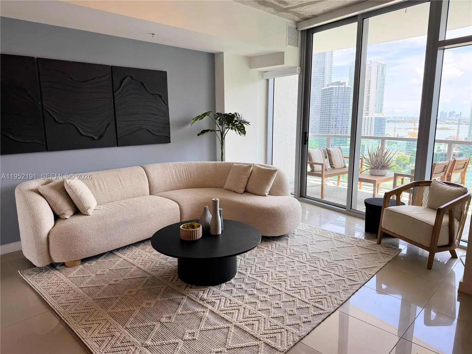 Available March 15, 2026. This spacious and highly sought after 1-bedroom, 1.5-bath residence is fully furnished with brand-new, high-quality furnishings and freshly painted interiors with a designer touch. Enjoy spectacular views of Biscayne Bay, the pool deck, and the city skyline from every room, including the oversized balcony. The apartment features stainless steel appliances, an open countertop layout, floor-to-ceiling impact windows, and an in-unit washer and dryer. Building amenities include a rooftop pool and jacuzzi, fitness center, summer kitchen, entertainment and business centers, and 24/7 security with a front desk attendant. Four Midtown is centrally located and within walking distance to shops and restaurants, Trader Joe’s, the Design District, and Wynwood.