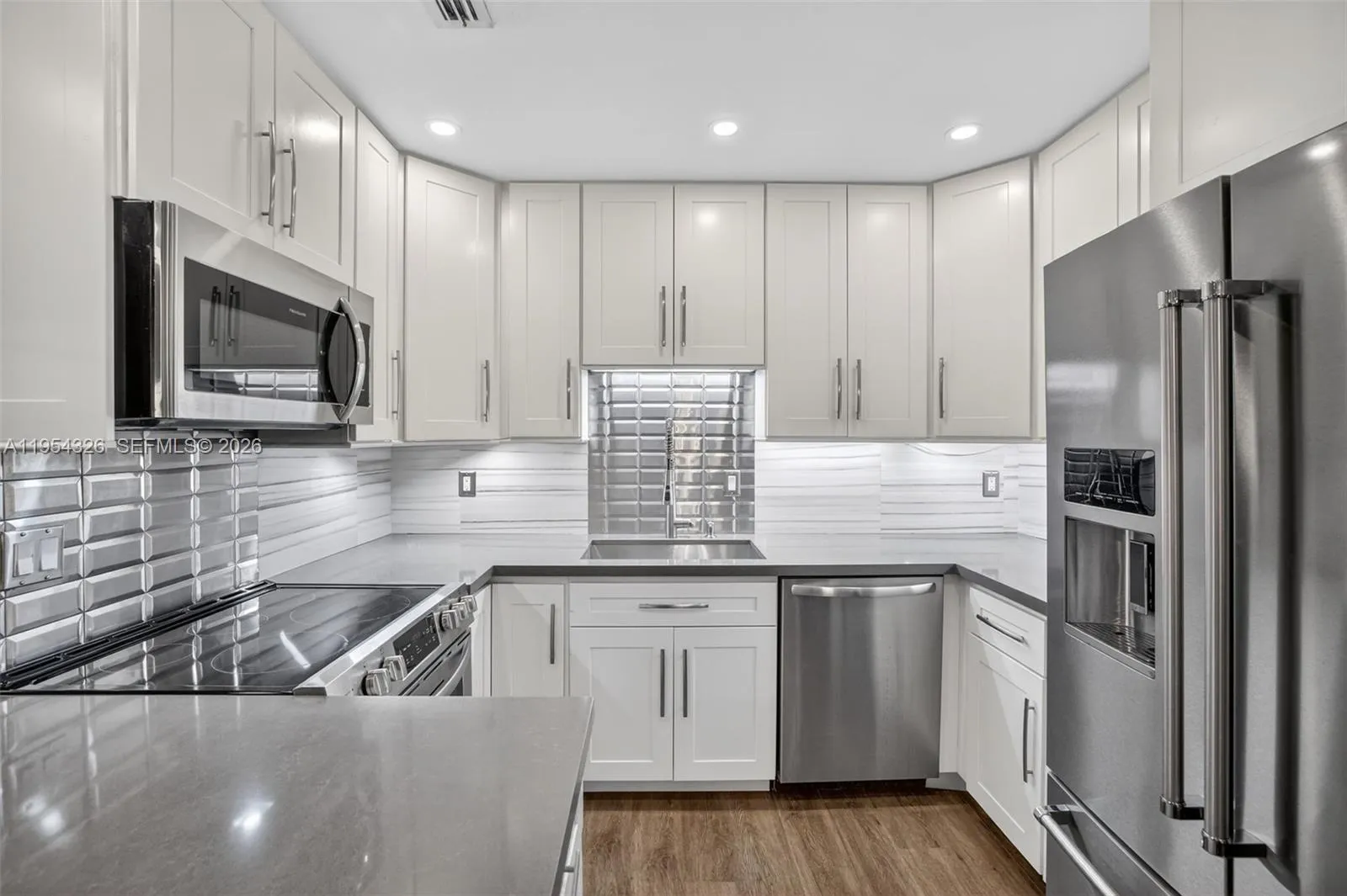 This fully remodeled condo offers modern waterfront living with style and comfort. The kitchen features new cabinetry, hardware, a larger farmhouse-style stainless steel sink, under-cabinet lighting, and a stainless and porcelain backsplash. Bathrooms have been fully updated with new vanities, while new doors, ceiling fans, and crown molding enhance the living spaces. Hurricane impact glass and sliding doors provide added security. The unit also includes a full-size washer and dryer, LED lighting, and a WiFi-enabled thermostat, lighting, and door lock for added convenience.rnrnEnjoy a prime location near the beach and a gated, resort-style community featuring six tennis and pickleball courts, four heated pools (including one with a bar), a gym, bike storage, and barbecue areas.