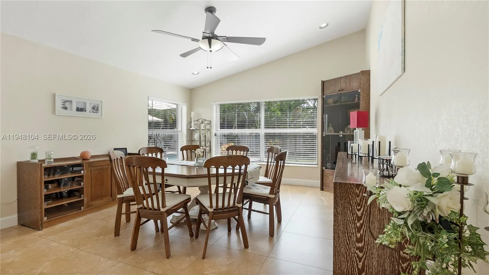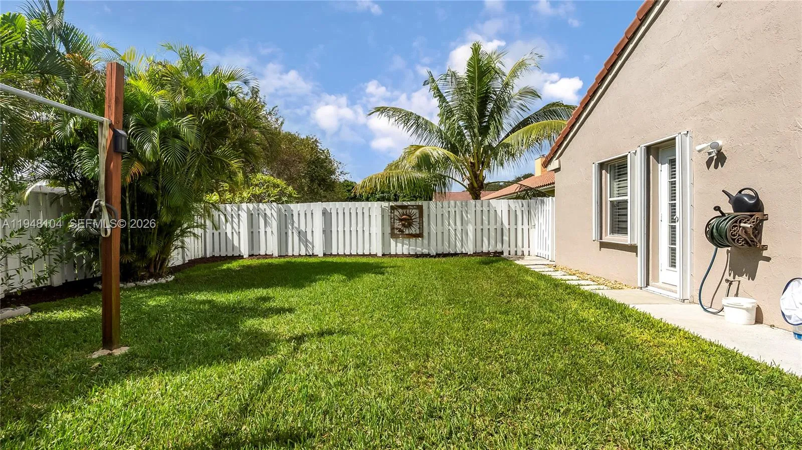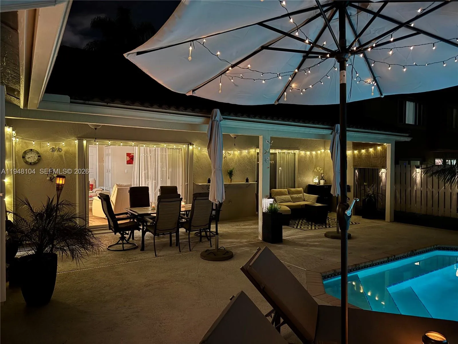 LOVINGLY MAINTAINED 4-bedroom, 2.5-bath home that has been lived in with pride and care. This warm and welcoming residence is where memories were made and children were raised. Located in THE ESTATES at the RESIDENCES OF SAWGRASS. A neighborhood of estate-style, private homes. rnENTERTAIN IN STYLE in the oversized POOL AREA, designed for fun, relaxation, and unforgettable gatherings. Enjoy a HUGE COVERED PATIO AREA perfect for lounging, dining, or hosting year-round, plus extra grassy space ideal for play, pets, or outdoor games. This backyard offers the perfect blend of comfort, space, and resort-style living.rnThe living areas feature elegant 24×24 tile flooring, while the bedrooms offer wood parquet floors and walk-in closets with custom built-ins. ZEBRA BLINDS, NO POPCORN ceilings throughout. Exterior painted in 2023. Equipped with a portable generator connection, NEW POOL PUMP, NEW HEATER and A NEW SPRINKLER TIMER. Multiple sheds and covered storage areas in backyard, Garage is AIR CONDITIONED. The complete accordion shutters provide excellent hurricane protection.rnRoof 2005, AC 2016, WH 2021.rnSpacious laundry room with washer and dryer with built-in drawers. Located in a great neighborhood with convenient access to major highways, Sawgrass Mills Mall, restaurants, and schools. Furniture can convey with exceptions.rnLow HOA fee, Big backyard vibes, Endless Entertaining— PLUS seller open to concessions. Don’t miss this one!