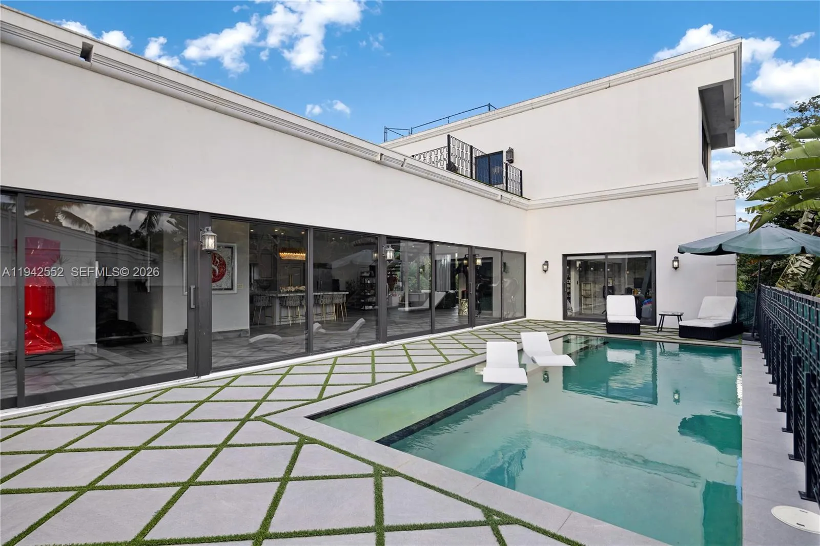 Step Inside With Me! This contemporary waterfront residence located on the gated island of Biscayne Point was reconstructed in 2022 by a meticulous owner. The home offers European touches throughout its bright interiors and impresses with its high ceilings, all while surrounded by walls of sliding glass. Designed for everyday use and entertaining, the professional-grade chef’s kitchen features Miele appliances, an oversized full slab island with a built in-dining table, contemporary cabinetry, and sleek flooring throughout the home. A floating staircase with glass panels leads to the second level, which is fully dedicated to the primary suite. The primary offers a spacious bath with modern finishes, a glamorous dressing room, and private terrace with water views. The outdoor area includes a waterfront backyard with generous green space, BBQ area, a lounge, and sizable dock for your boat. And, the infinity-edge pool is the central focal point of the home. A  garage, gated entry, automated AC controls, and appropriate guest bedrooms complete this offering. Biscayne Point is conveniently located minutes from Bal Harbour shopping and dining, the beach, and other Miami Beach cultural destinations.
