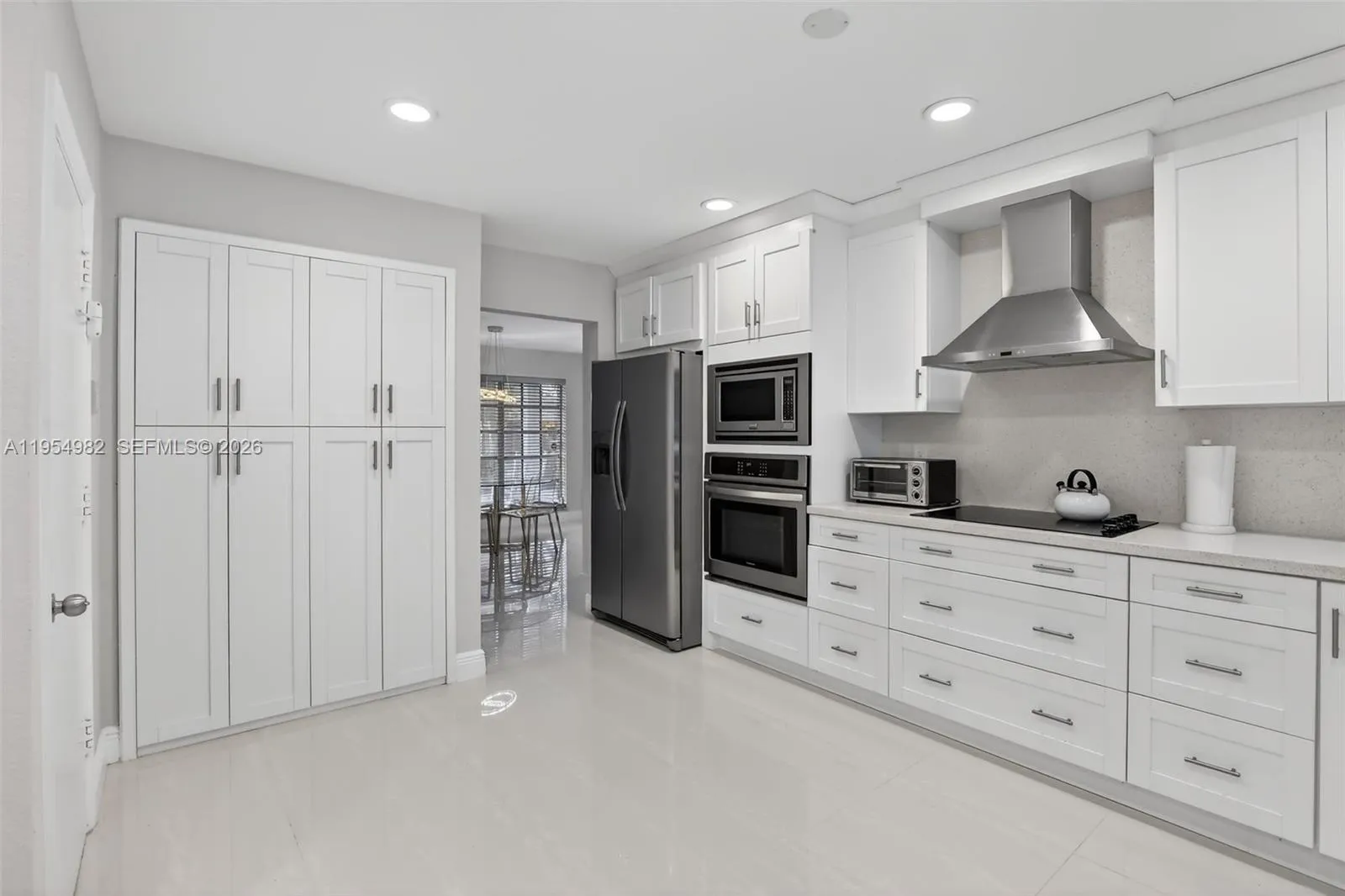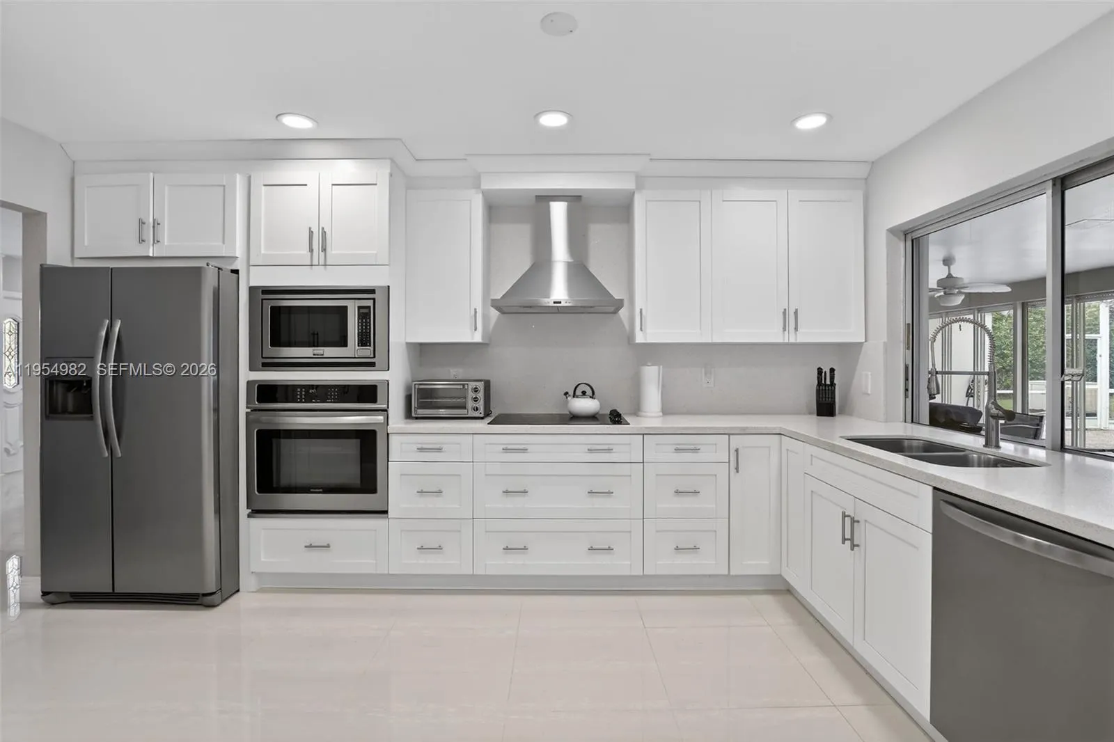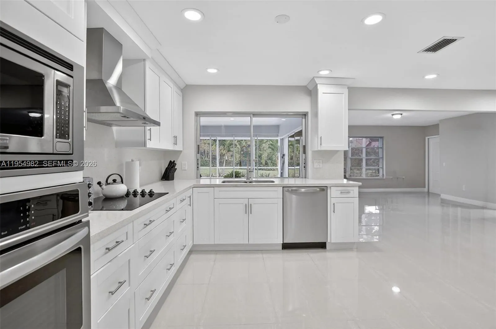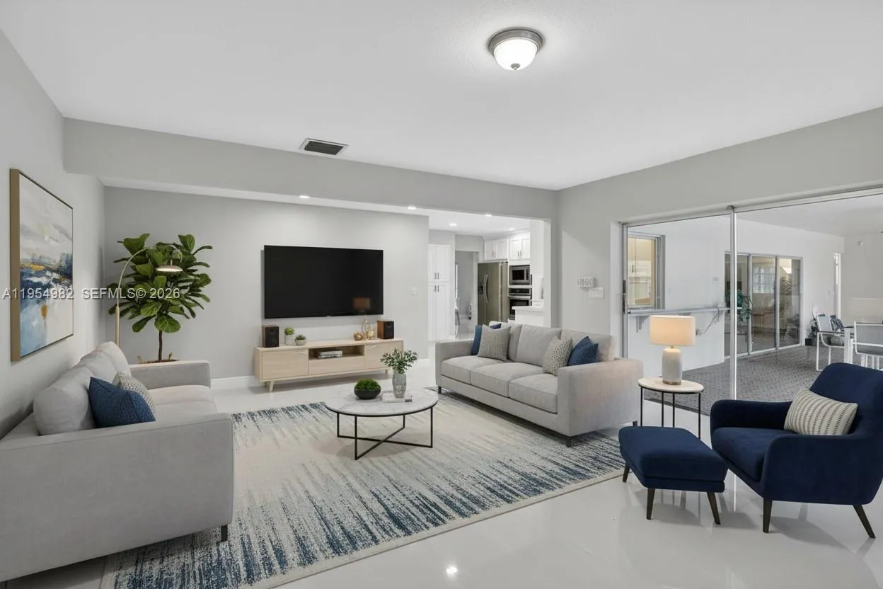 Set on an oversized corner lot in the sought-after Eldorado Estates, this 4-bedroom, 3-bath home is built for gathering and everyday ease. The open great room offers a bright, comfortable flow with porcelain flooring throughout the main living areas. The kitchen sits at the center of the home with white cabinetry, stainless steel appliances, and open views to both the living space and backyard. The primary suite opens directly to the screened-in pool and patio, creating a seamless indoor–outdoor connection. The backyard is made for entertaining, with a screened-in pool, paver decking, and covered patio, ideal for hosting, relaxing, and enjoying the space year-round. Eldorado Estates is known for its tree-lined streets, wide roads, and strong sense of community, with amenities including a clubhouse, park, playground, pickleball, and tennis courts, all conveniently located near shopping, dining, and major roadways in the heart of Plantation.