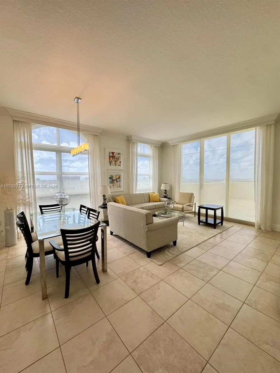 Spectacular Tower Suite on the 28th floor, Fully furnished, Large terrace with breathtaking views of the golf course and the ocean in the heart of Aventura. With 3 bedrooms and 2.5 bathrooms, one of them in suite, 10 feet high ceiling, stainless steel appliances, split-floor plan, granite kitchen, washer/dryer, closets. GREAT opportunity to live in a desired location in Aventura. Across the street from Aventura Mall, one of the most important shopping centers in South Miami with world-renowned brands, also just minutes from the famous Turnberry golf courses. 2 covered linear parking spaces and 24-hour valet parking. Spectacular amenities; 2 story gym and spa, pools, jacuzzi, billiards and party room, playground, BBQ area and much more. Call listing agent for more info.