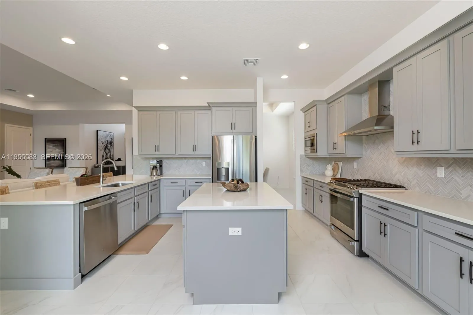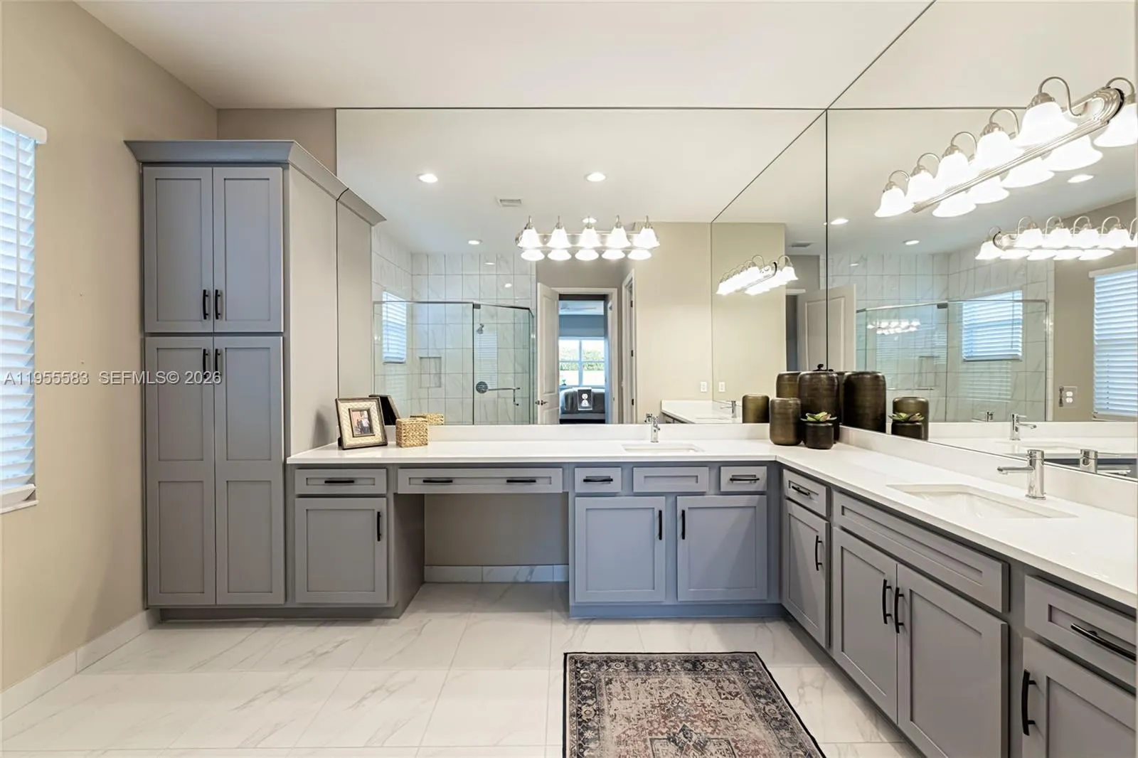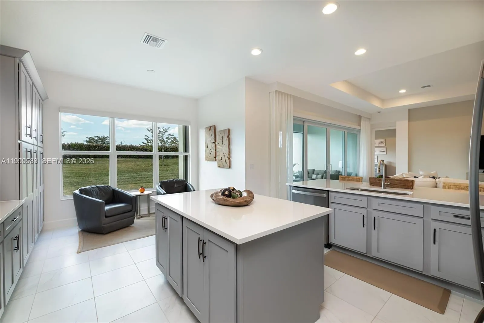 Magnificent and highly coveted private lot offering lush greenery views—an ideal backdrop to create your own personal oasis. This practically brand-new, model-like home welcomes you with impeccable condition and over $150,000 in premium upgrades throughout. Elegant upgraded tile flooring flows seamlessly through the living areas, kitchen, and bathrooms. The chef-inspired kitchen is a standout, featuring upgraded appliances, a vented hood option, quartz countertops, enhanced cabinetry, kitchen pull-outs, a trash cabinet, and a converted pantry for maximum functionality. Thoughtful custom built-ins include a linen closet, laundry cabinetry with sink, and beautifully finished primary closets. Designer wallpaper, fresh interior paint, plantation shutters, motorized blinds, and stunning custom drapery add sophistication from floor to ceiling. Every detail has been carefully curated, offering luxurious, move-in-ready living at its finest.