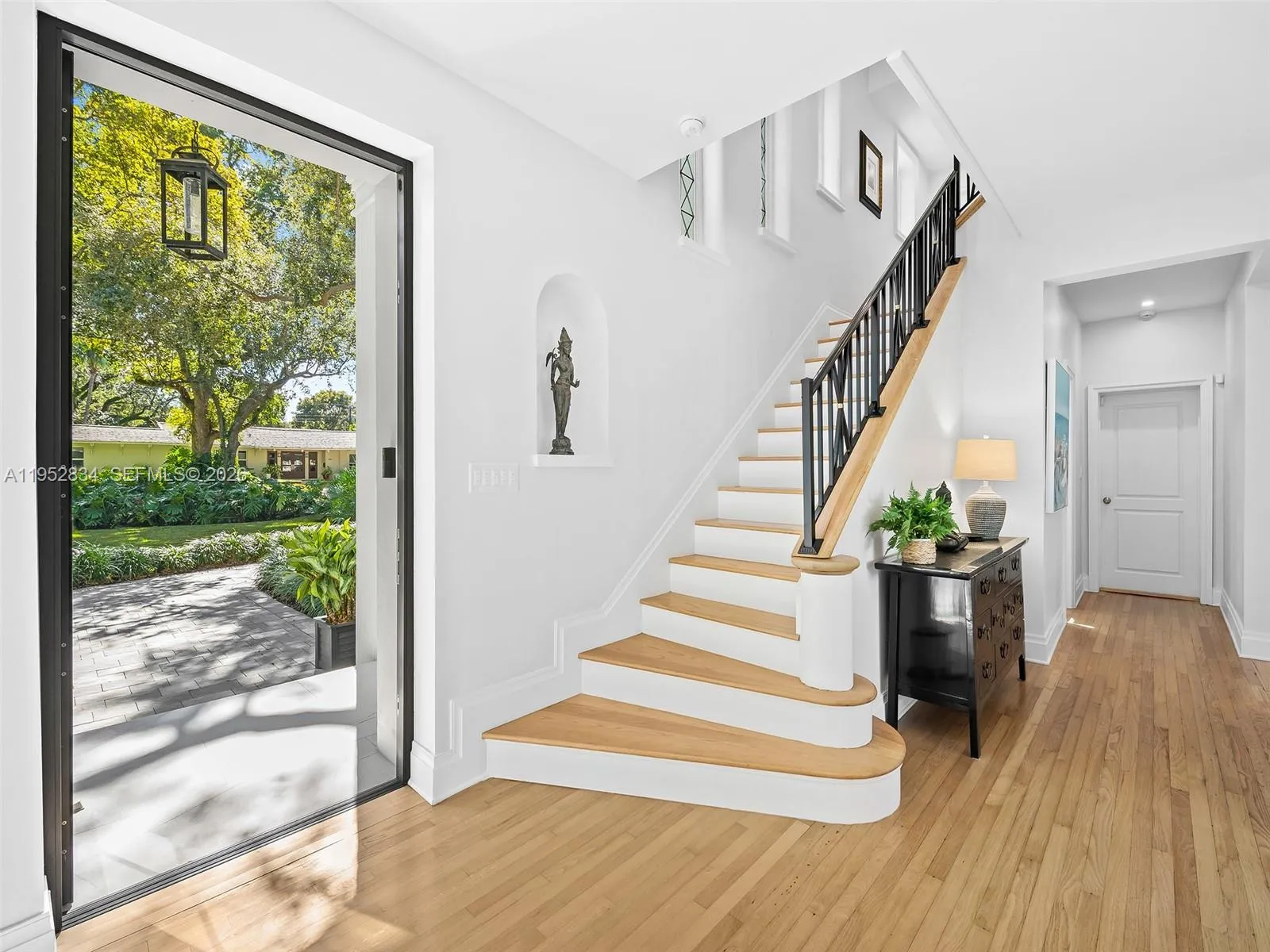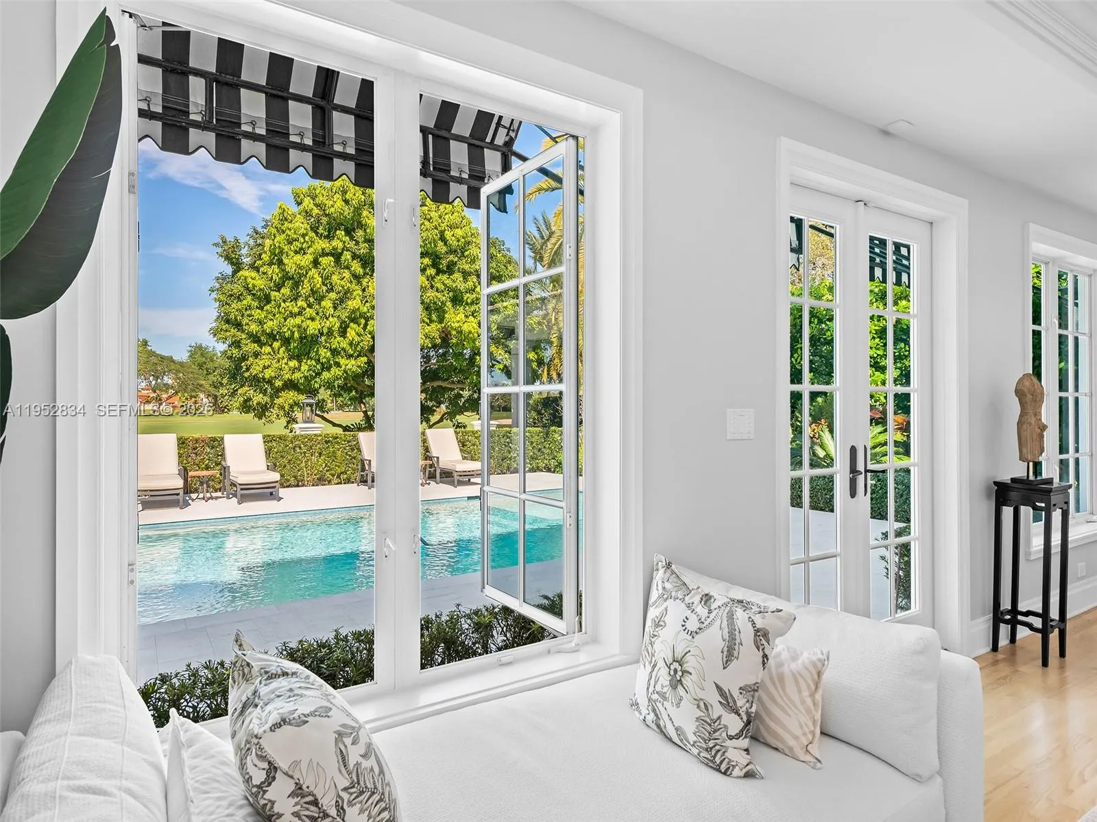 Welcome to Villa Mariola, located in Coral Gables, a beautifully reimagined 1940 residence showcasing Streamline Moderne grandeur, perfectly positioned across the green from the Historic Biltmore Hotel. Set on a slightly elevated site, lush subtropical landscaping frames a commanding backdrop, the Biltmore’s iconic tower rising above the golf course, an unforgettable Mediterranean Revival landmark built in 1926.rnDesigned to celebrate the view, Villa Mariola features expanded doors and windows oriented toward the Biltmore, capturing its morning light and evening glow from throughout the home. Interiors have been thoughtfully refined to create a cohesive narrative, pairing Coral Gables-inspired materials with modern enhancements for today’s living.rnThe floor plan unfolds as a sequence of framed vistas, with nearly every room opening toward the Biltmore, while others borrow brilliant natural light through carefully placed openings. Outdoor living is equally compelling, with a resort-style setting that balances leisure and perspective, a pool positioned to span the Biltmore on one side and a loggia on the other, echoing the timeless rhythm of the hotel’s arcades and verandas across the fairway.rnVilla Mariola is a rare dialogue between past and present, honoring one of Florida’s most treasured architectural icons while delivering a refined, contemporary lifestyle in the heart of Coral Gables.